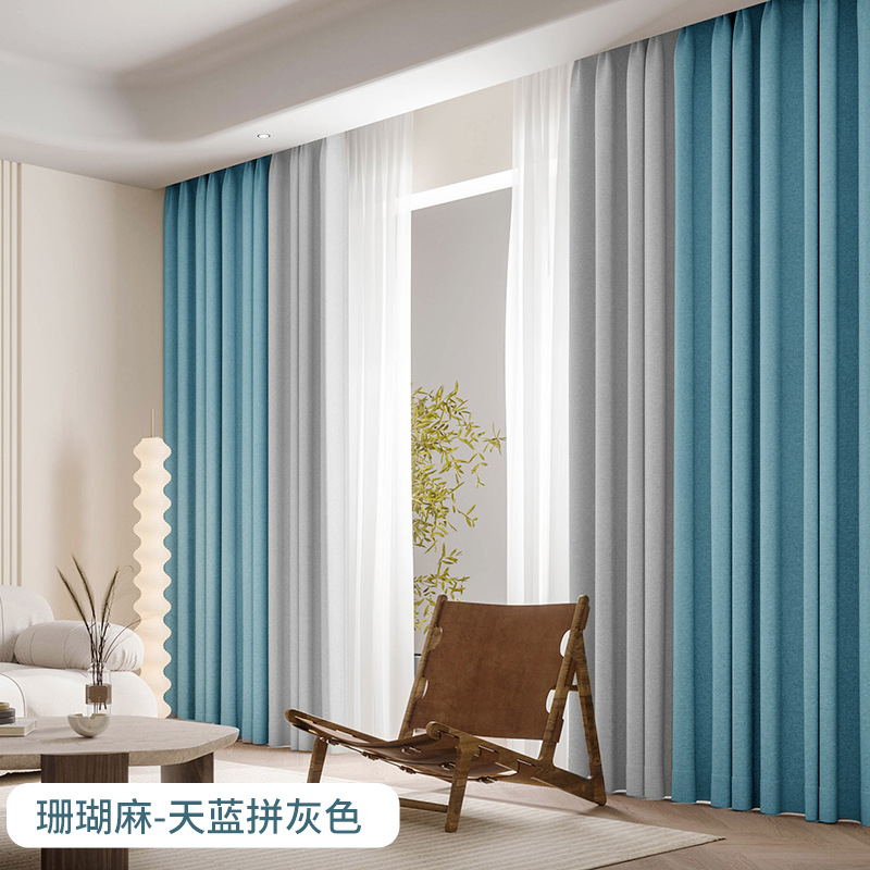 침실 커튼 거실 면과 린넨 암막 북유럽 심플 단색 배색 수동 전동 레일 로마 봉 커튼