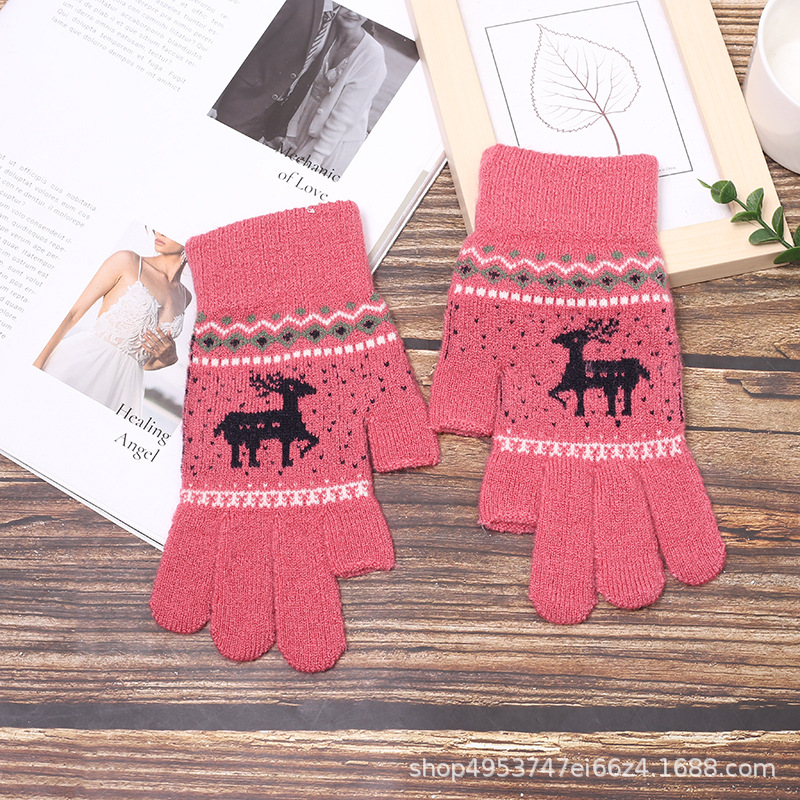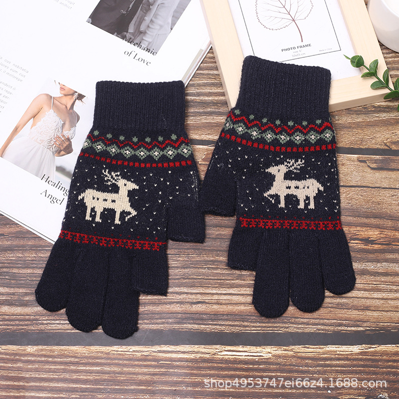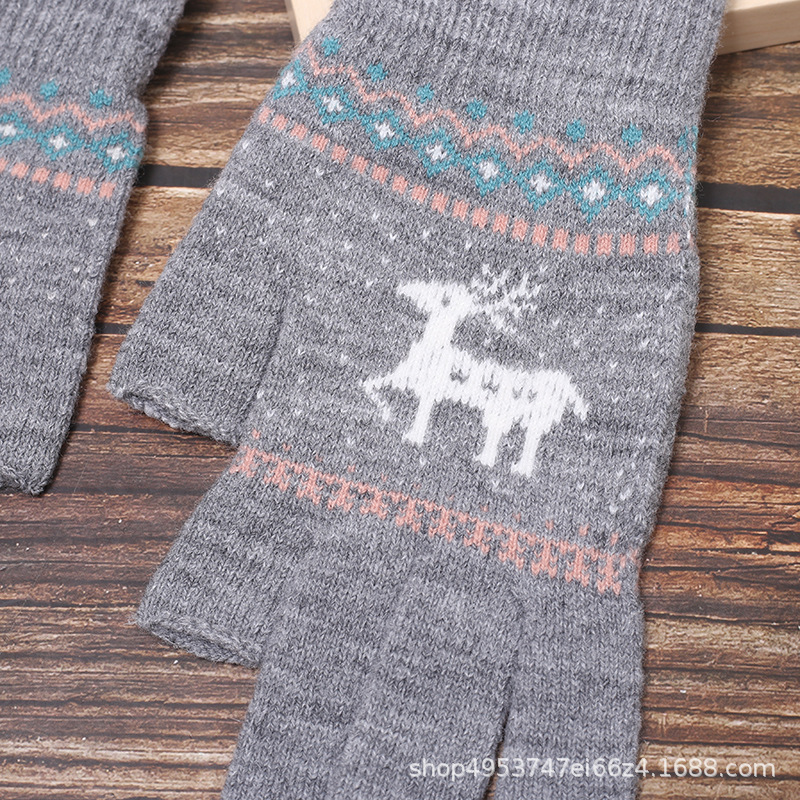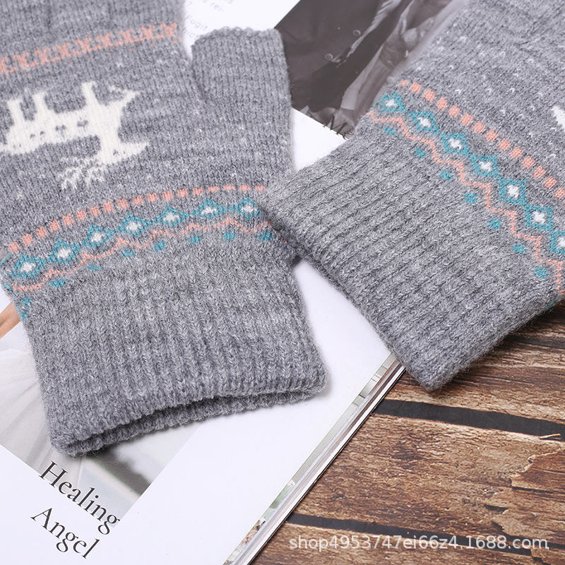 겨울 장갑 여성용 따뜻한 방한 두 손가락 쓰기 장갑 학생용 한국식 새끼 사슴 기모 니트 자카드 장갑