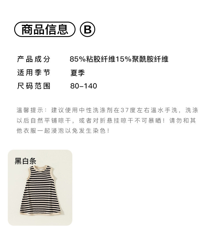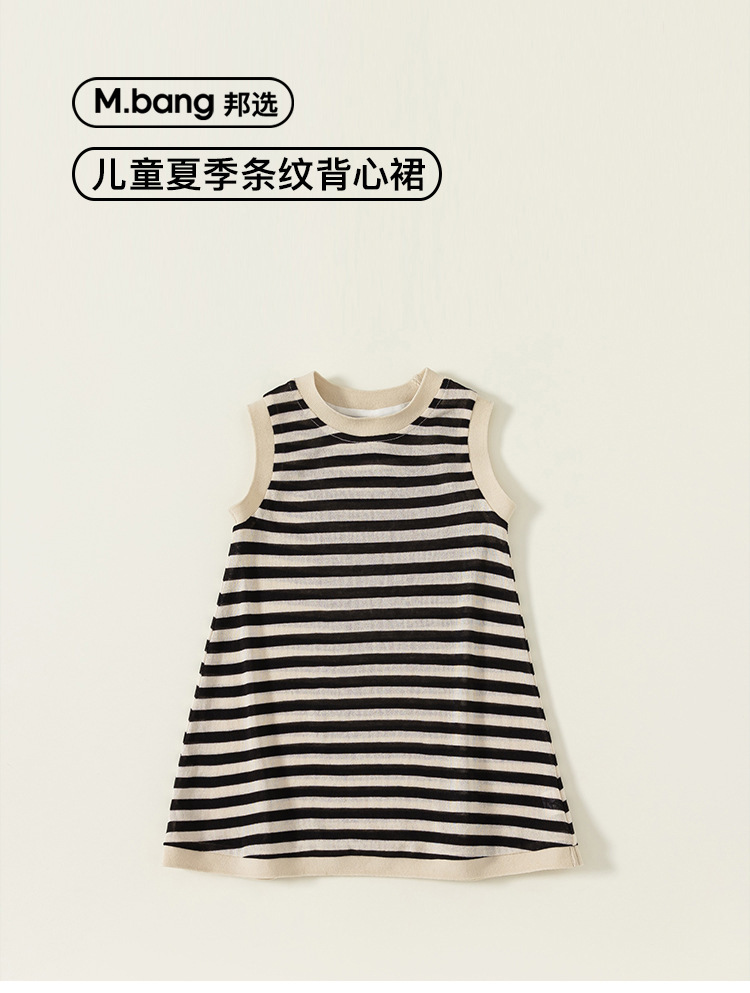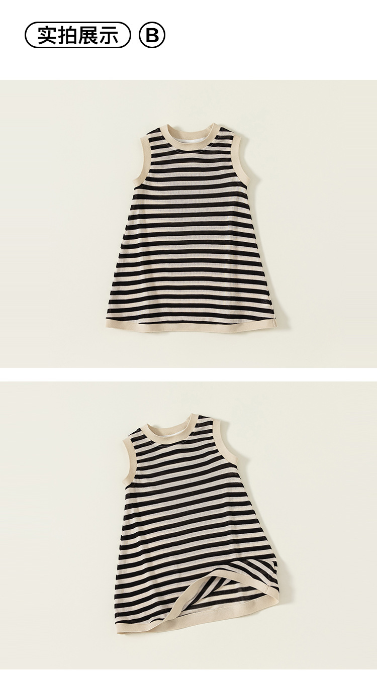 유바오 아동복 여아 스커트 한국식 니트 스트라이프 바캉스 스커트 어린이 민소매 슬링 원피스 XQ23277