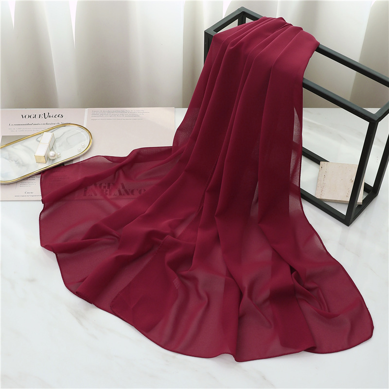 진주 쉬폰 스카프 단색 직사각형 터번 여성 숄 기본 단색 조커 스카프 도매