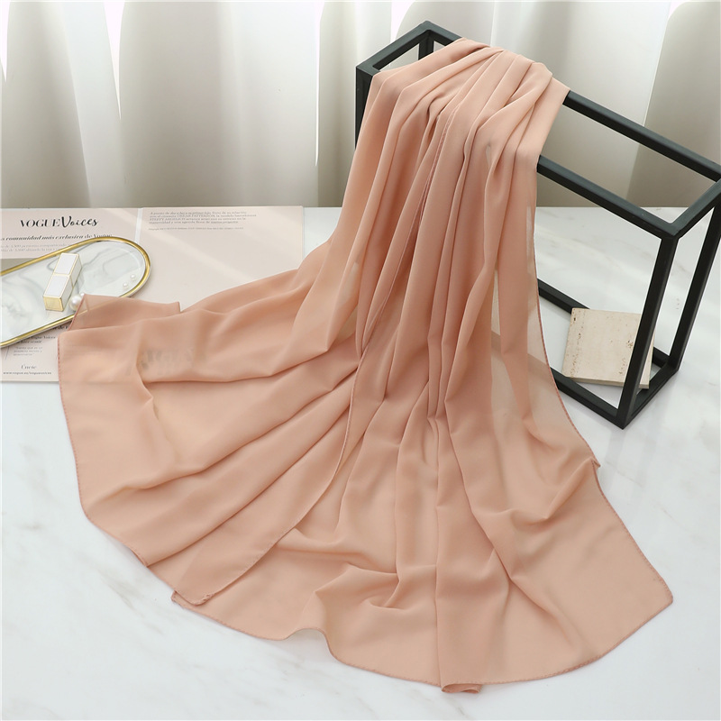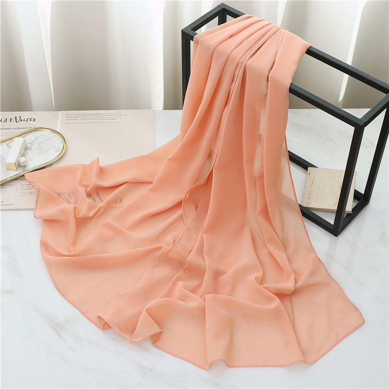 진주 쉬폰 스카프 단색 직사각형 터번 여성 숄 기본 단색 조커 스카프 도매스토어 가기