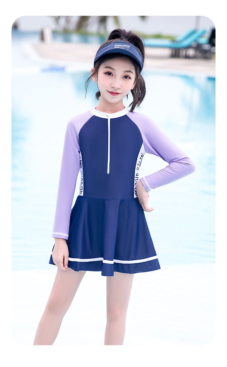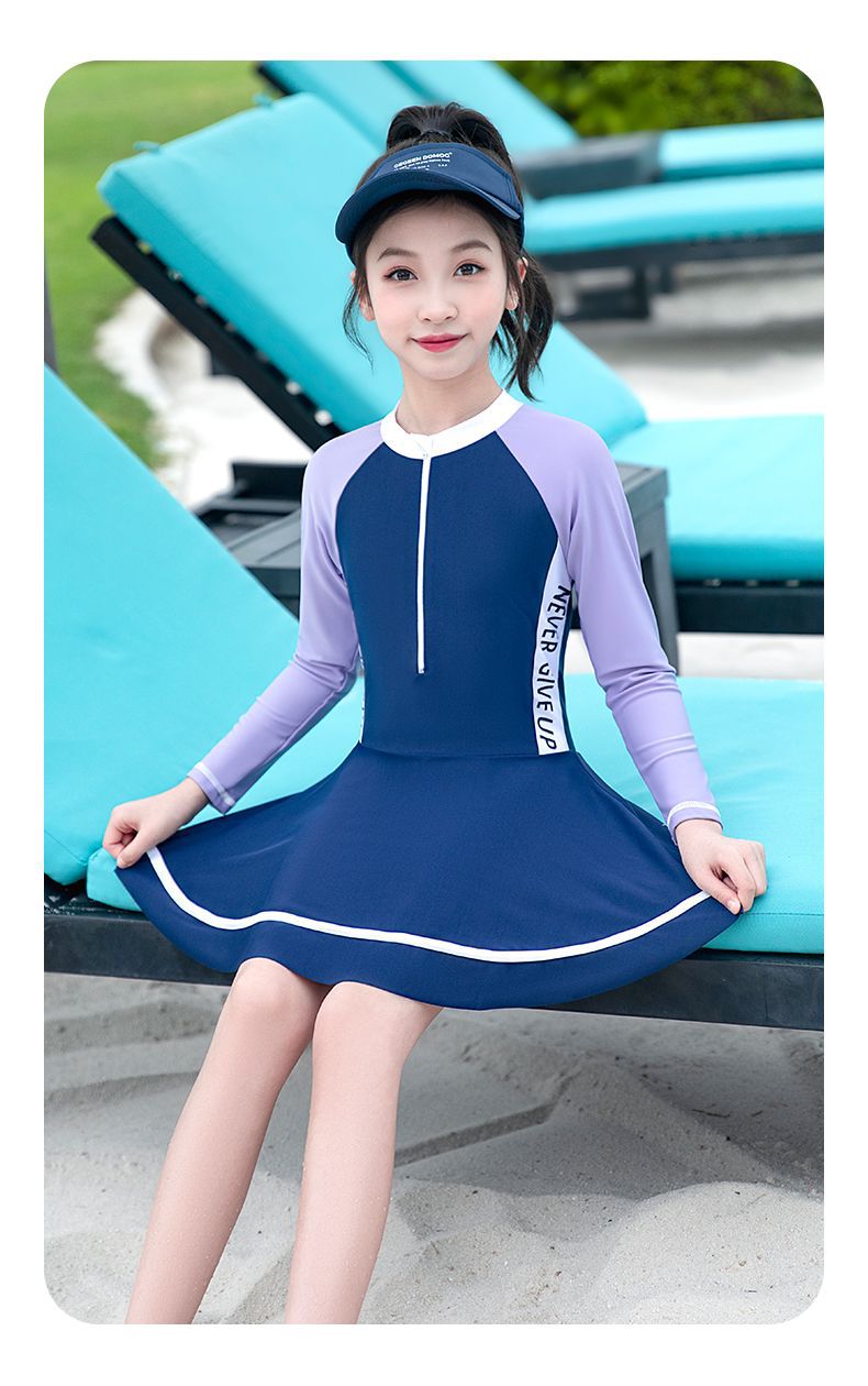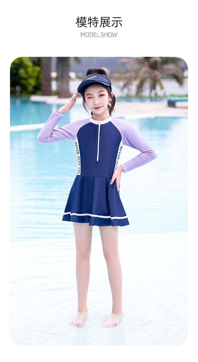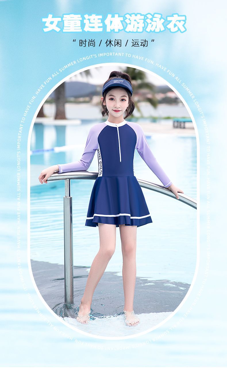 어린이 수영복 소녀 새로운 긴팔 원피스 전문 수영복 어린 소녀 중대형 어린이 수영복 여성 여름 도매스토어 가기