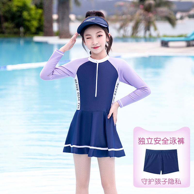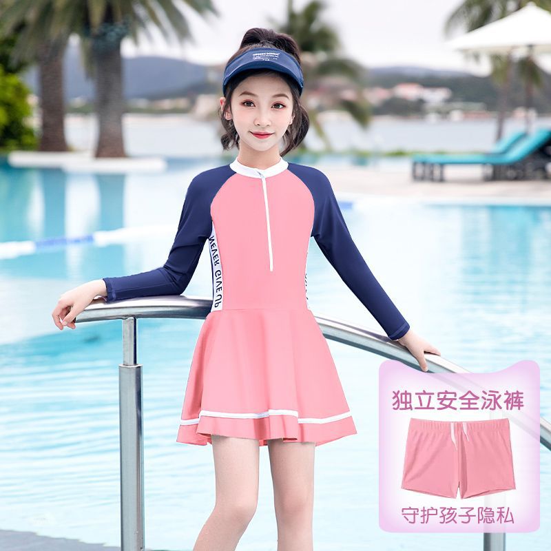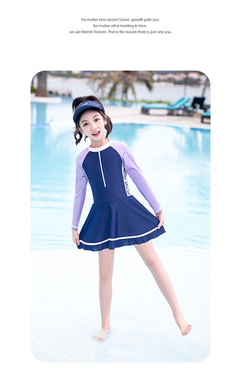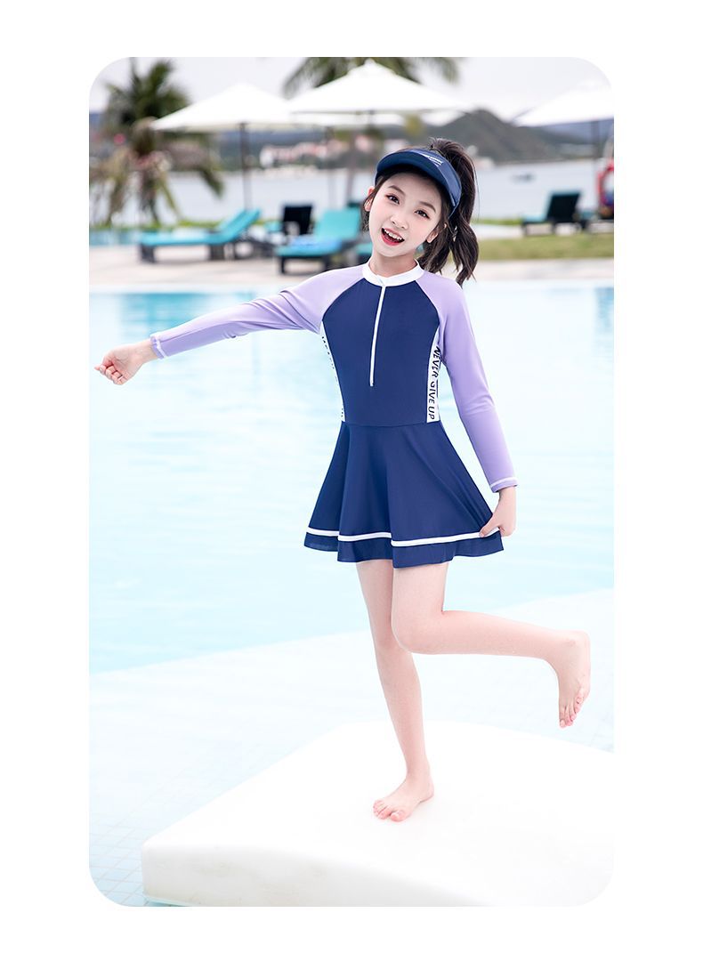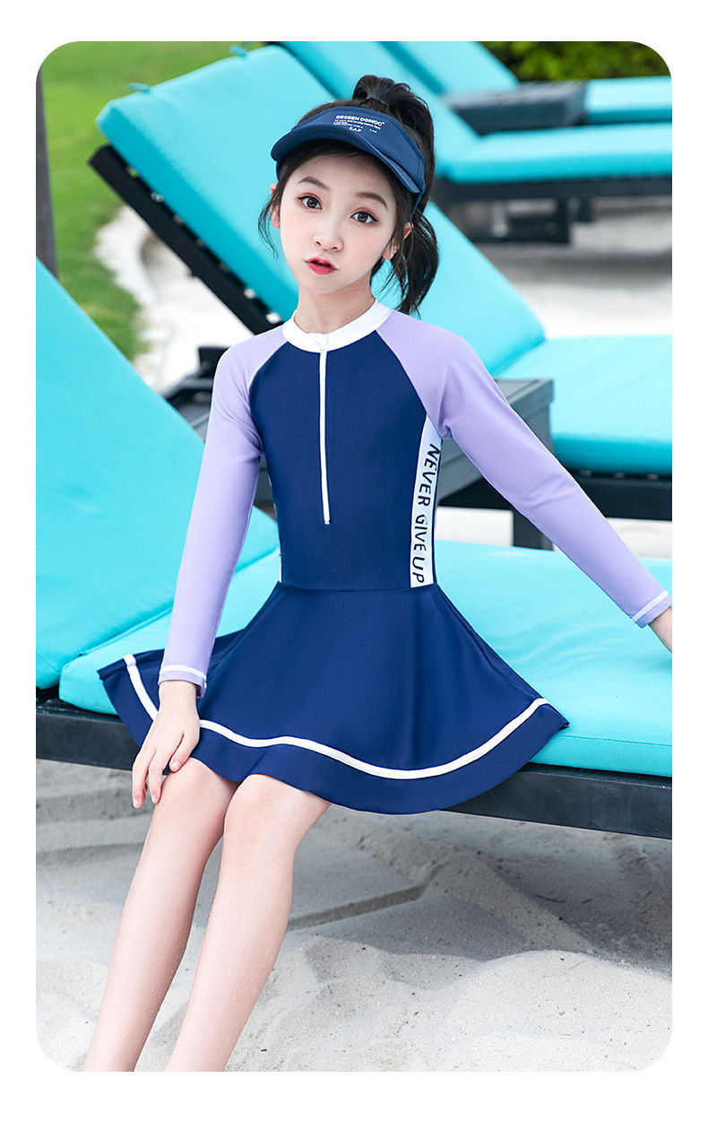 어린이 수영복 소녀 새로운 긴팔 원피스 전문 수영복 어린 소녀 중대형 어린이 수영복 여성 여름 도매스토어 가기