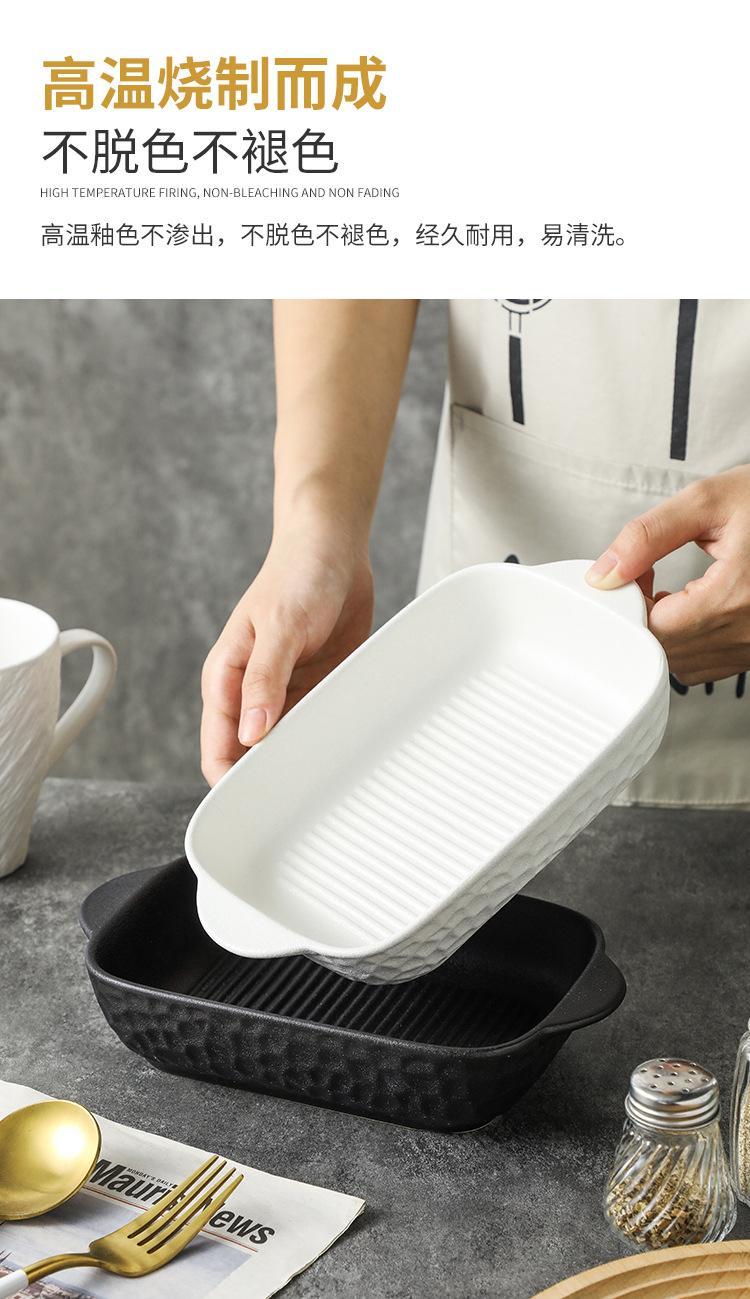 일본식 식기 돌무늬 양손잡이 베이킹 팬 세라믹 밥그릇 치즈 밥그릇 가정용 전자레인지 접시