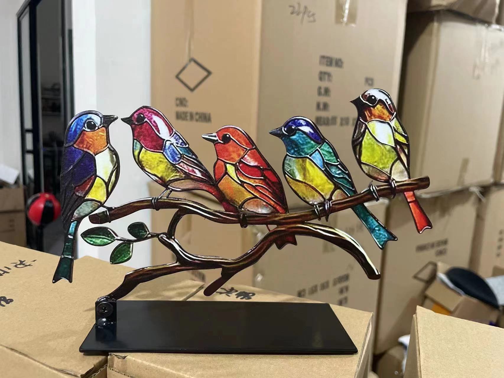 크로스 보더 꽃 색상 새 장식품 아크릴 철 3D 다채로운 새 공예 장식스토어 가기