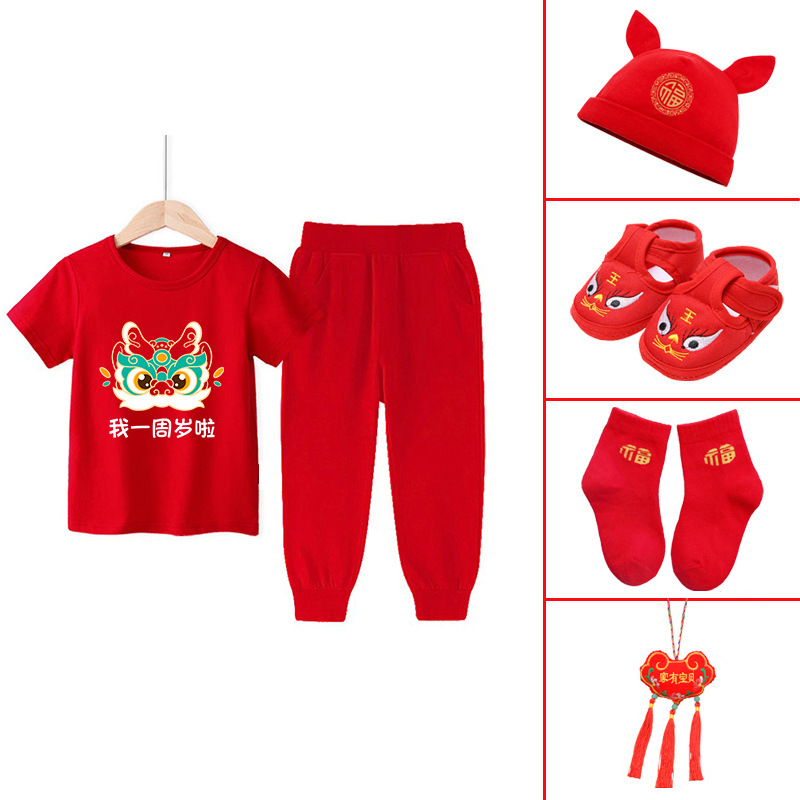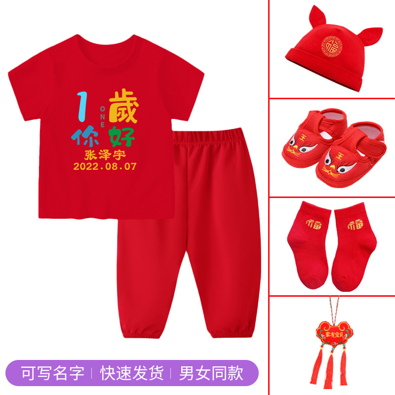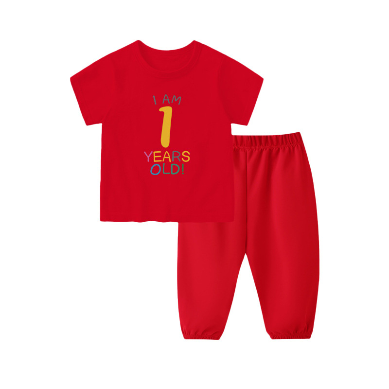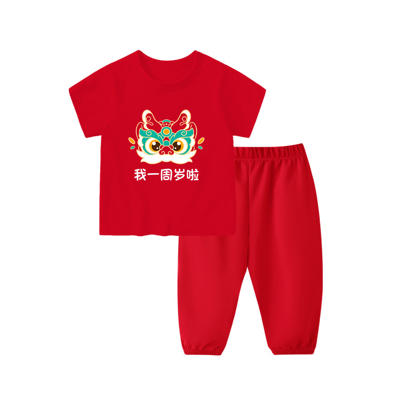1세 남아용 생일 드레스, 여아용 반팔 바지 정장, 빨간색 남아용 아기 옷