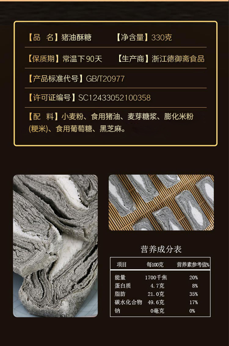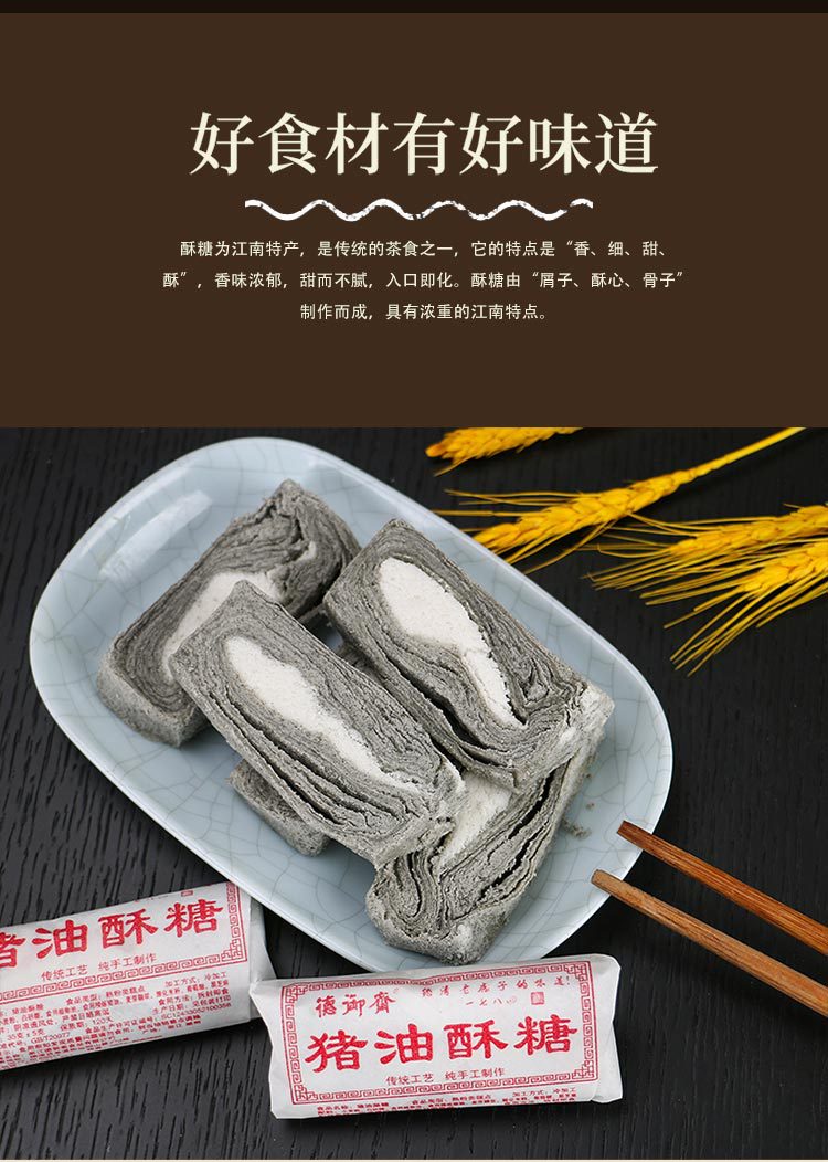 Deyuzhai 전통 라드 사탕 구식 수제 과자 무거운 참깨 사탕 어린 시절 향수 간식 Huzhou 전문
