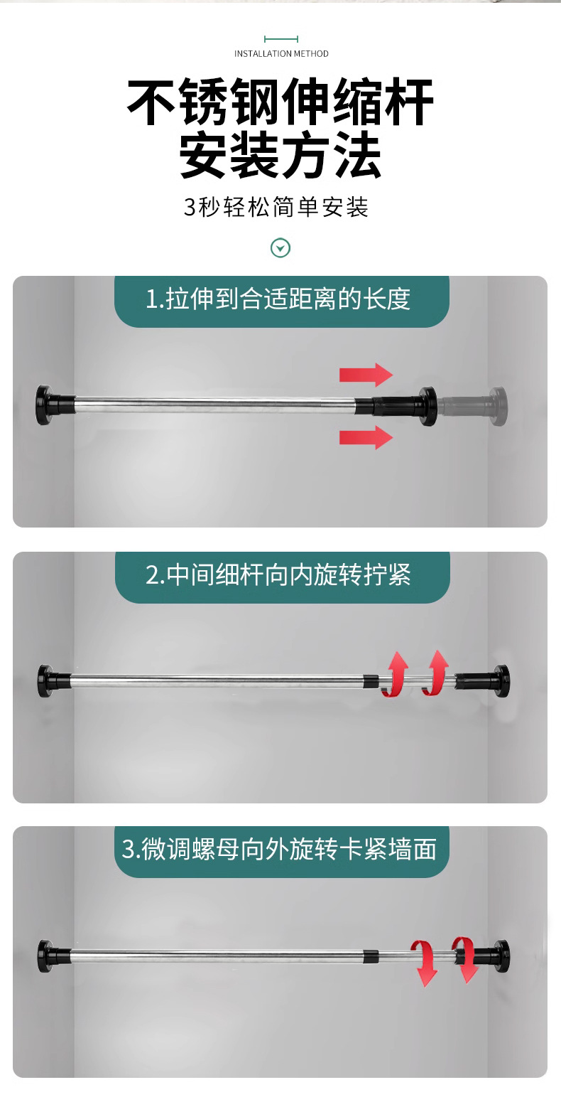 팩토리 소스 스테인레스 스틸 옷 폴 천공 텔레스코픽 폴 커튼 걸이 폴 샤워 커튼 폴 건조 컵 다용도스토어 가기