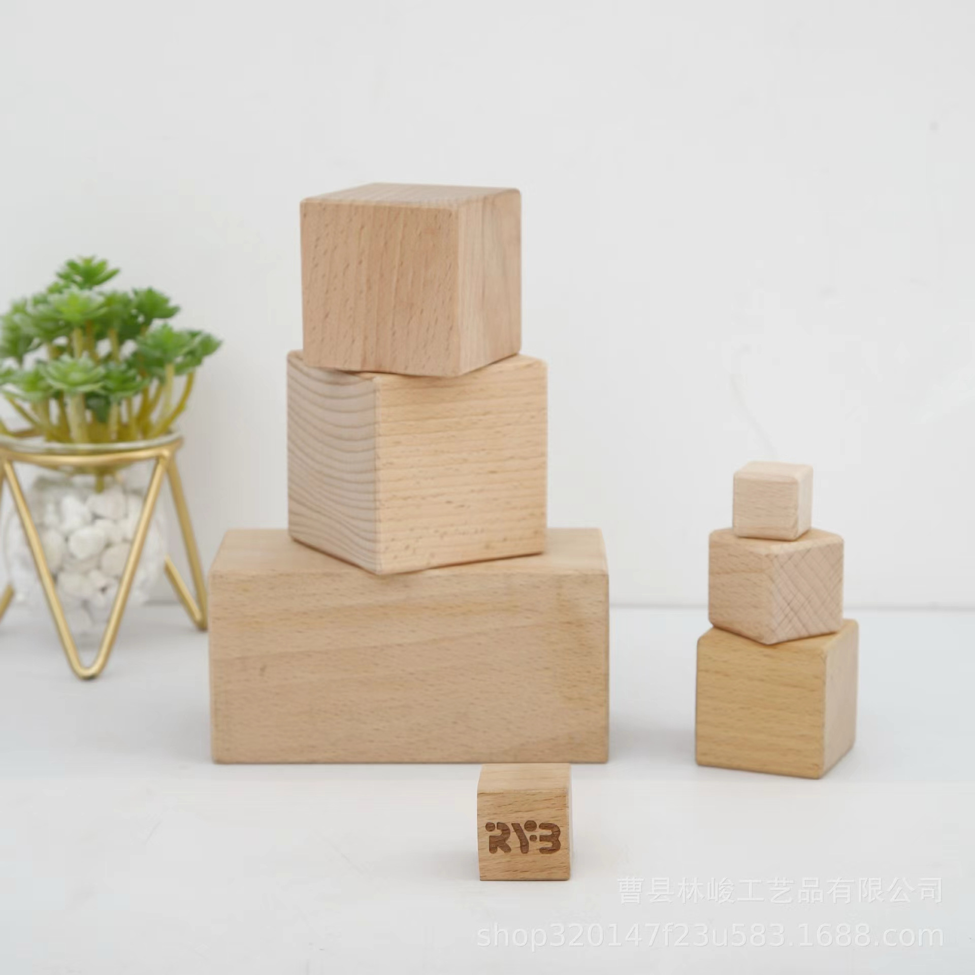 다양한 크기의 정사각형 나무 블록 어린이 장난감 블록 수학 교구 DIY 모델 교육용 너도밤나무 블록