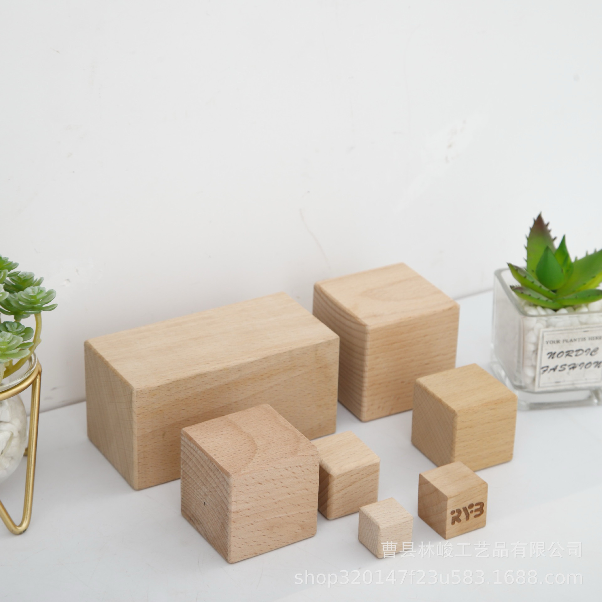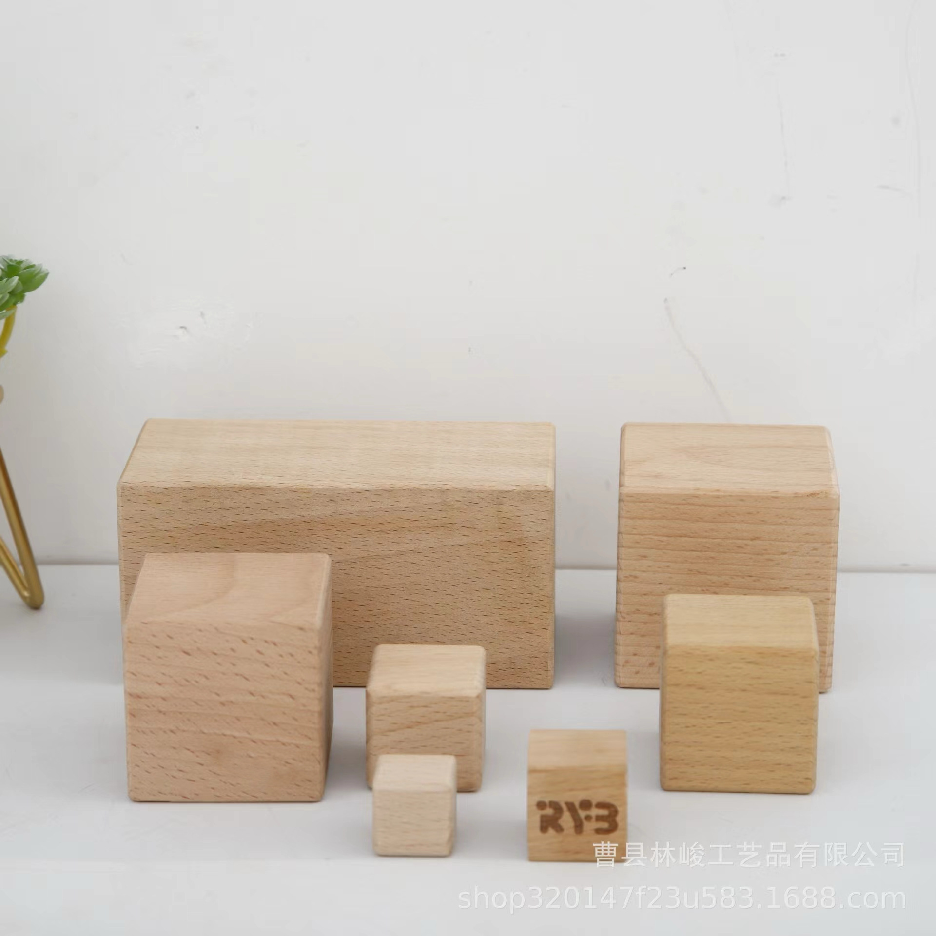 다양한 크기의 정사각형 나무 블록 어린이 장난감 블록 수학 교구 DIY 모델 교육용 너도밤나무 블록스토어 가기