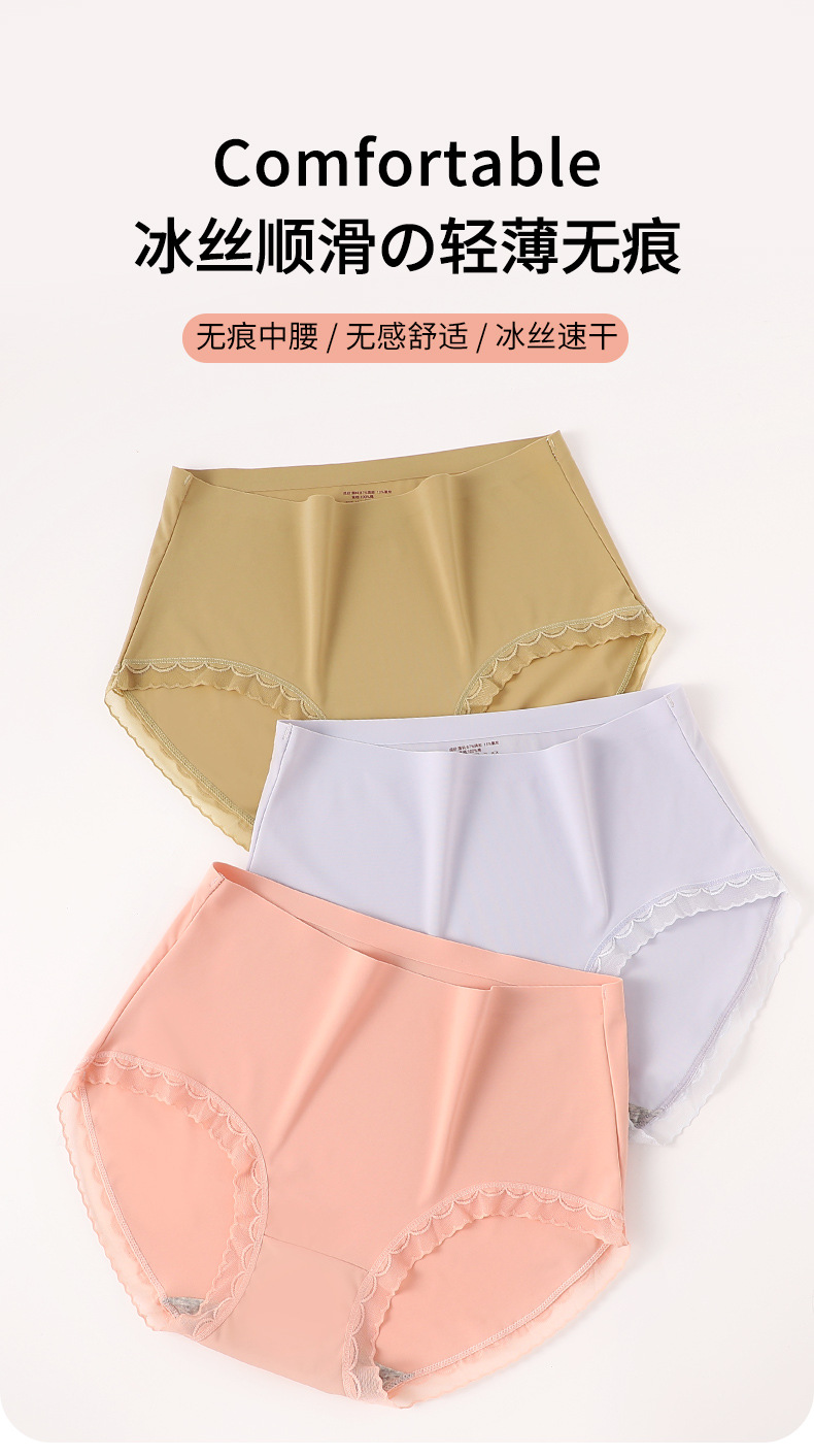 여름 숙녀 아이스 실크 속옷 여성 레이스 원활한 소녀 속옷 통기성 중간 허리 플러스 사이즈 브리프 도매스토어 가기