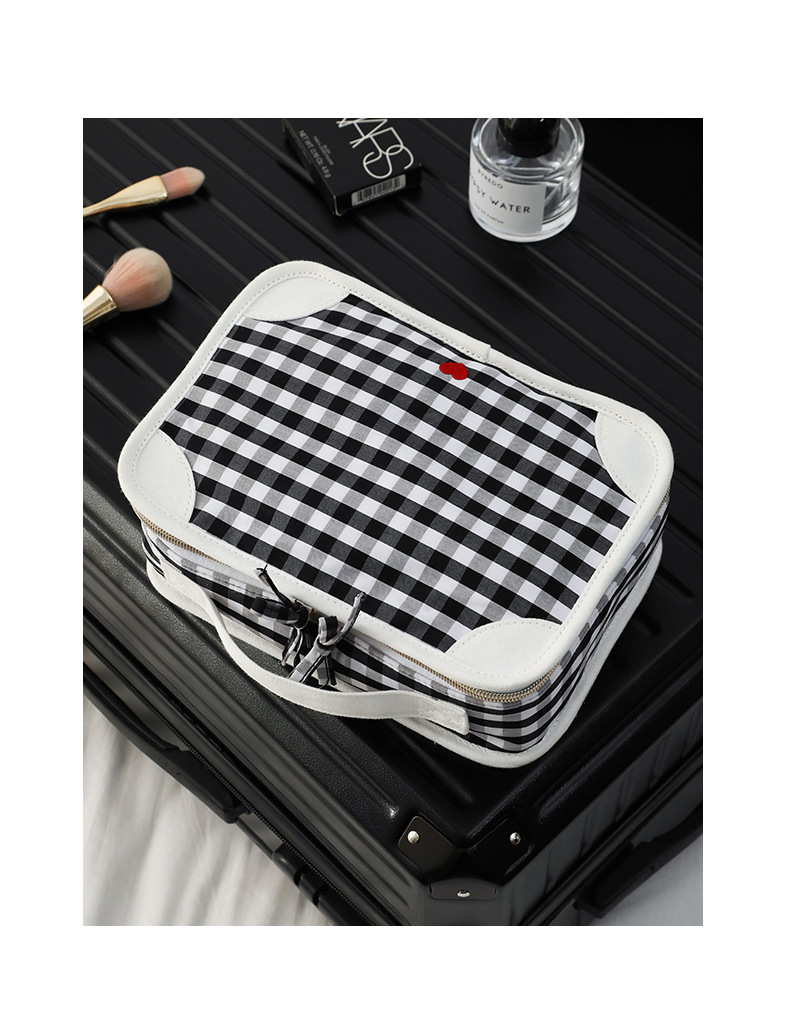 2023 새로운 흑백 격자 무늬 화장품 가방 스타일 대용량 화장품 가방 보관 여행 세면도구 가방