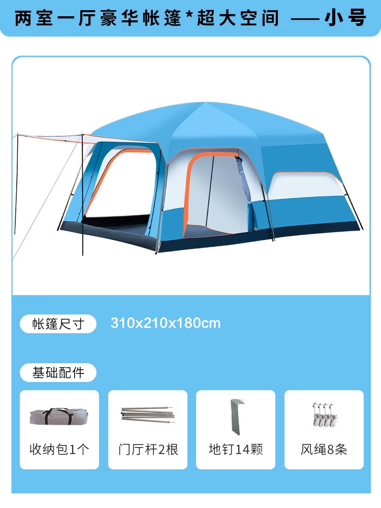 텐트 야외 2 베드룸 1 거실 대형 공간 캠핑 장비 캠핑 휴대용 접이식 태양 방지 공원 피크닉스토어 가기