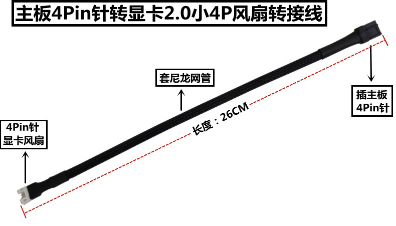 • 검정색 4핀 - 그래픽 카드 2.0 4*4 나일론 메쉬 한 쌍