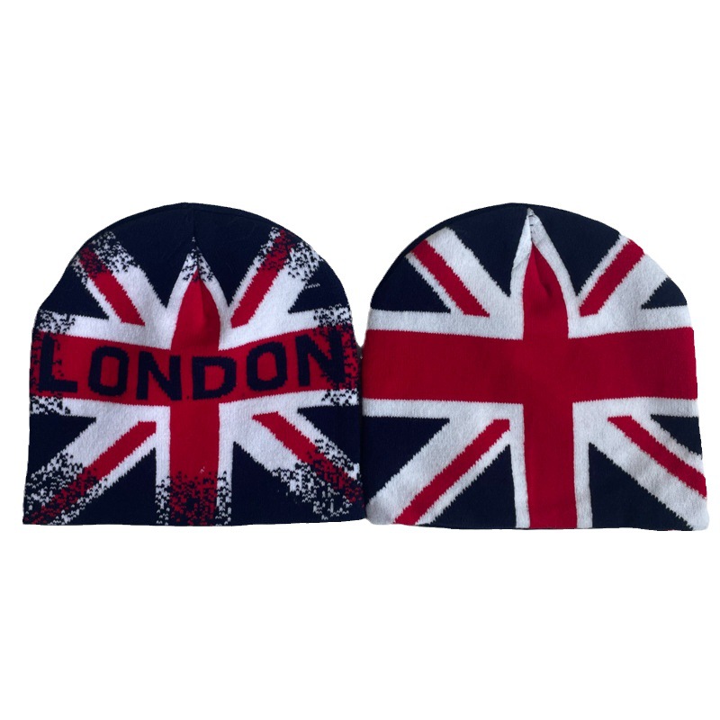 유럽과 미국 가을과 겨울 영국 쌀 깃발 자카드 니트 모자 남자와 여자의 따뜻한 풀오버 모자 대외 무역 도매