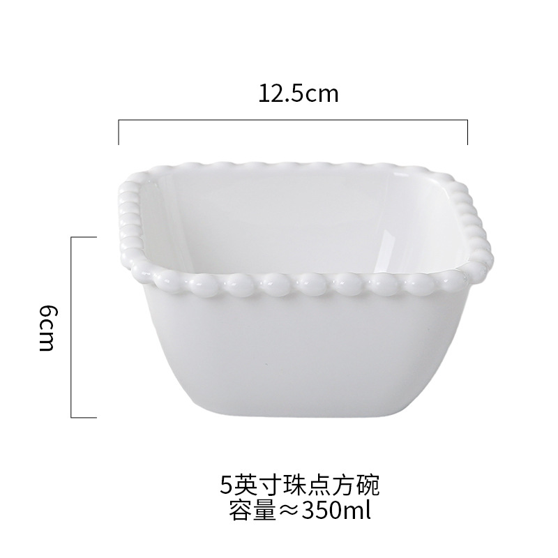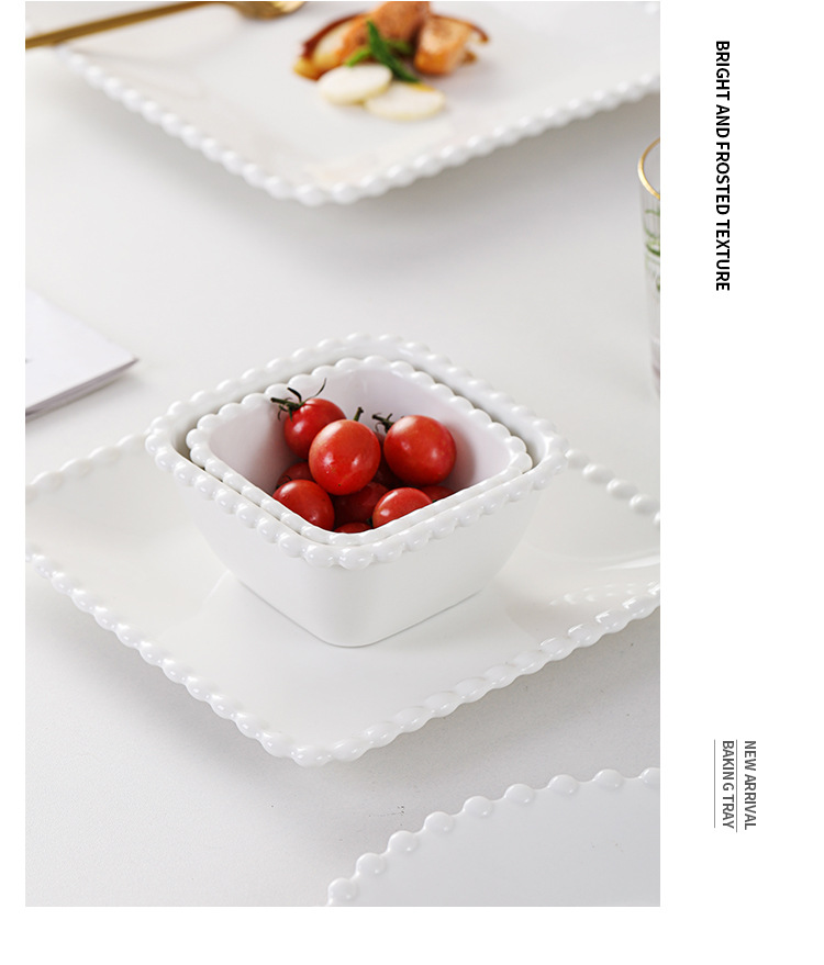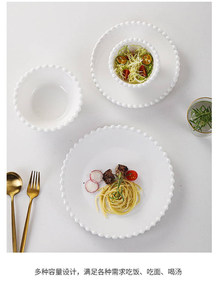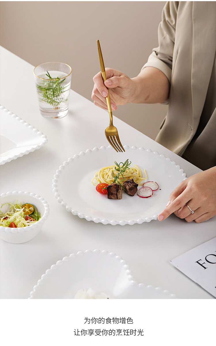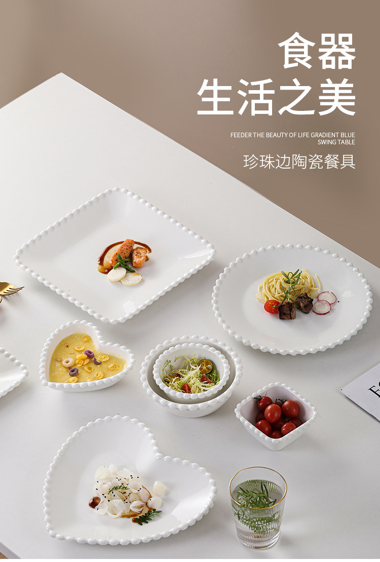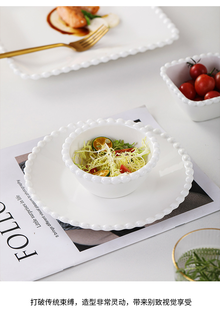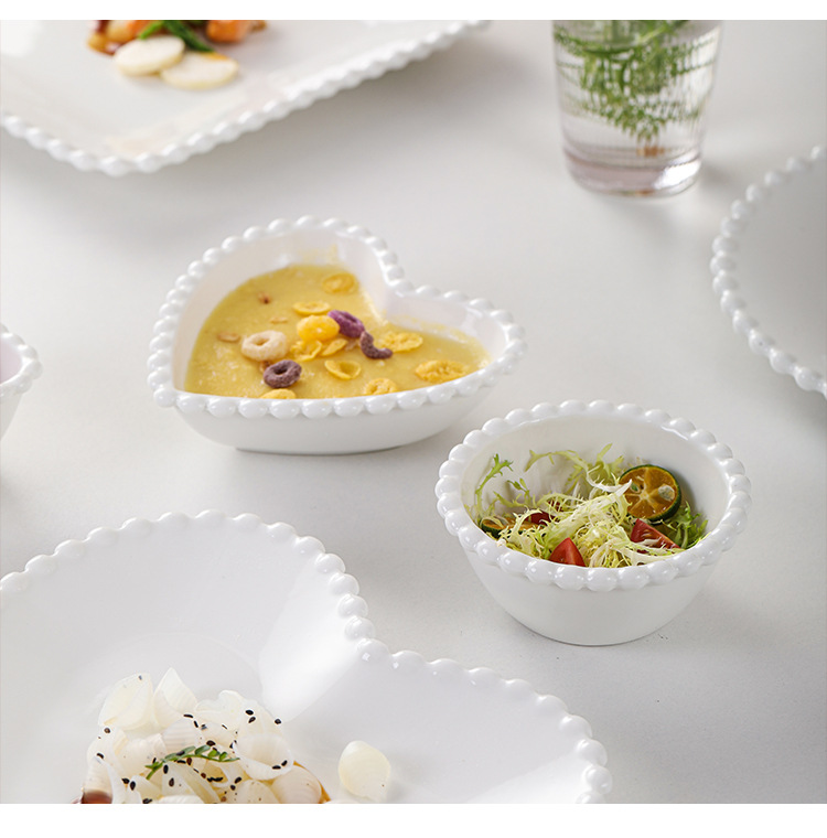 창조적 인 진주 가장자리 세라믹 가정용 쌀 그릇 아침 식사 접시 디저트 스낵 그릇 서양 음식 접시 간단한 케이크 간식 접시