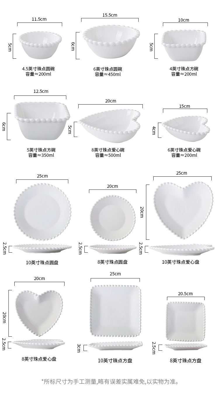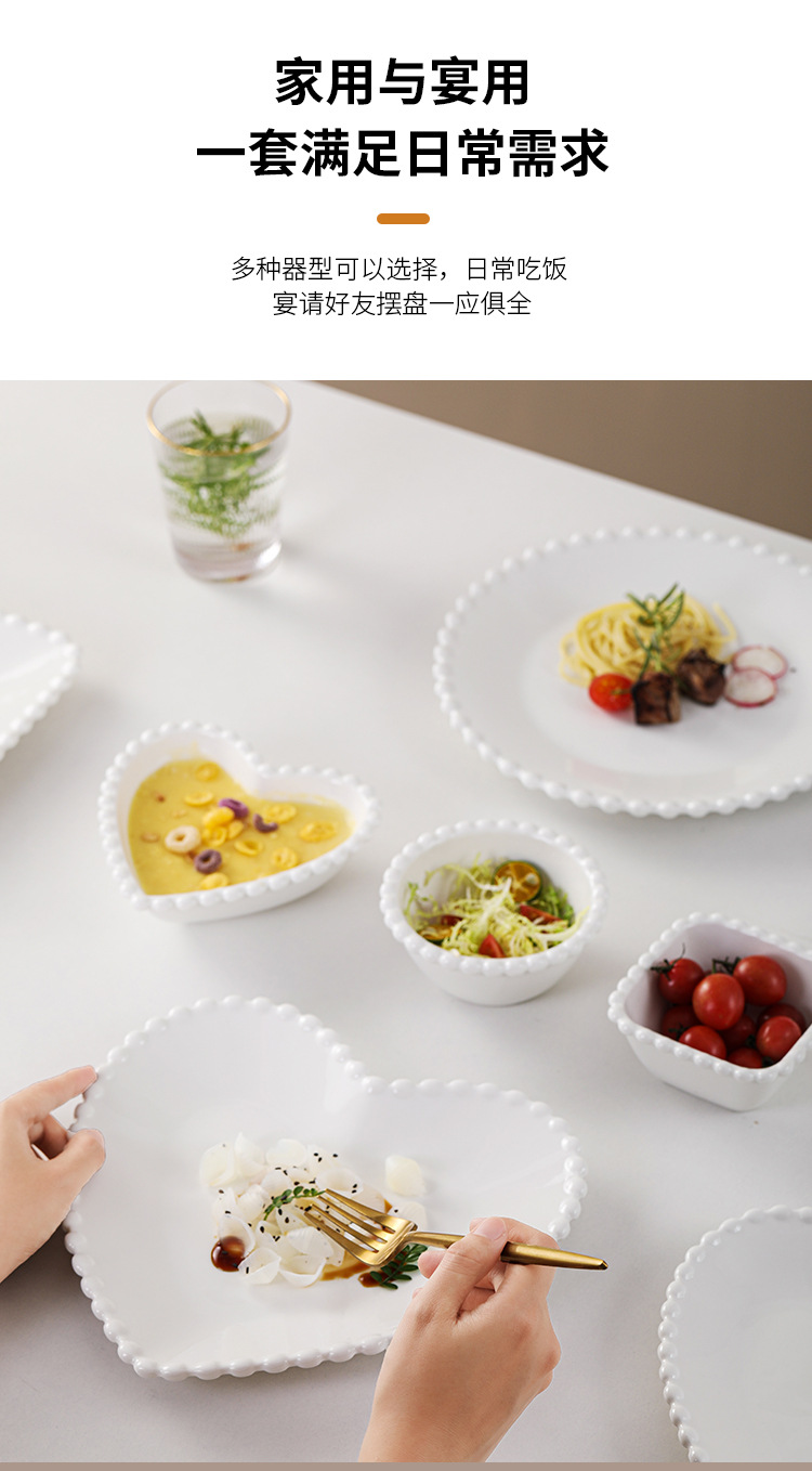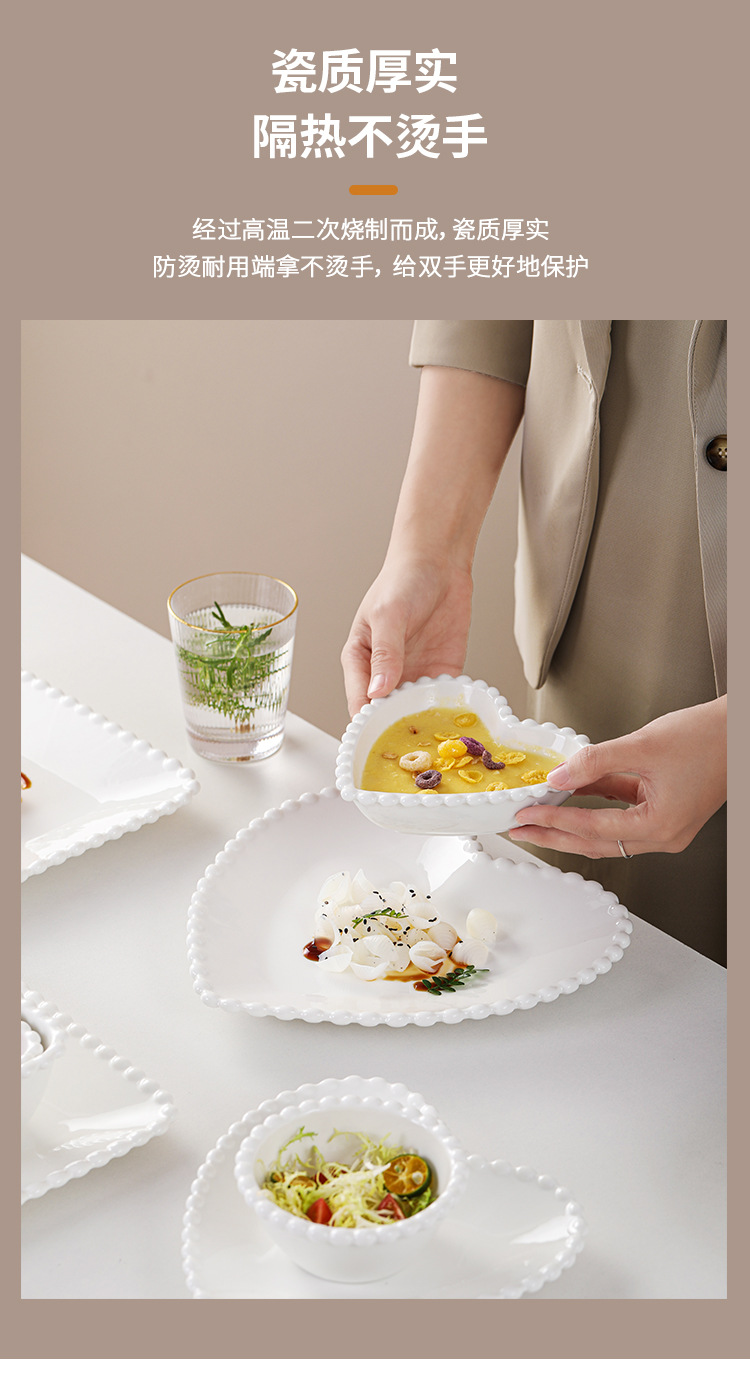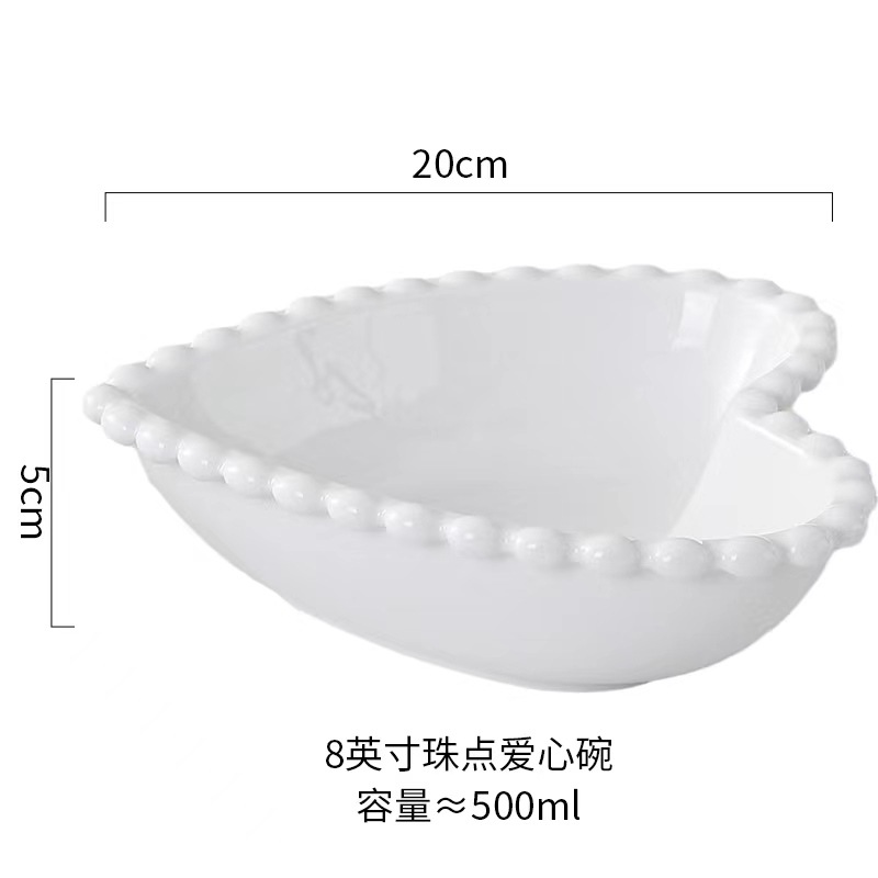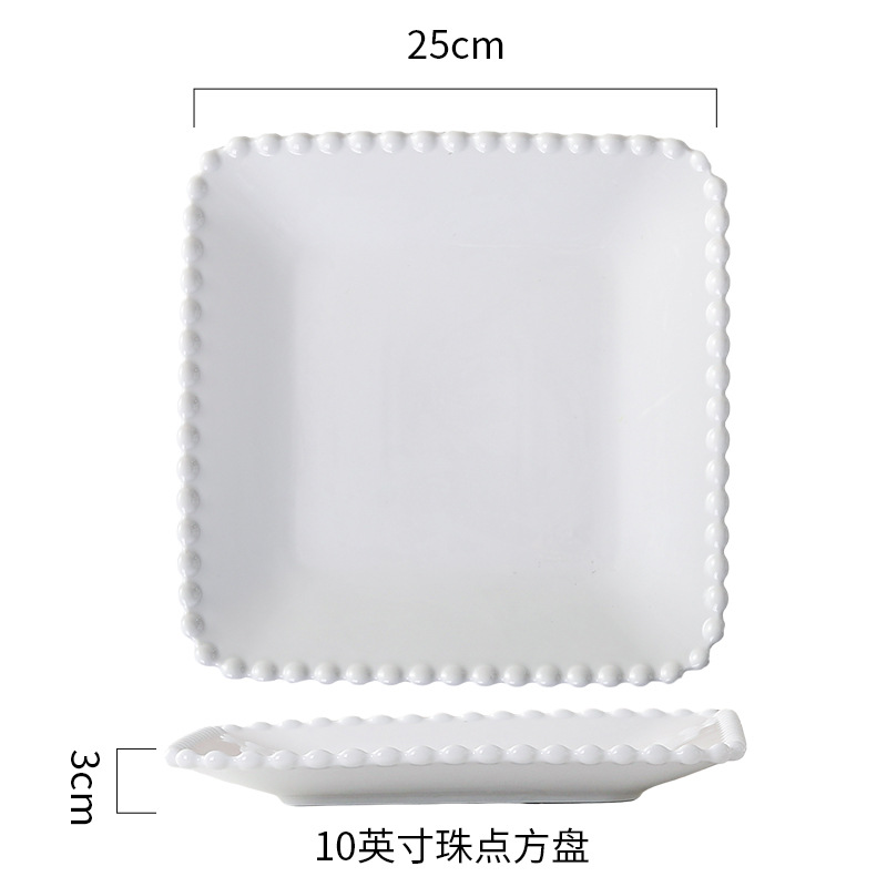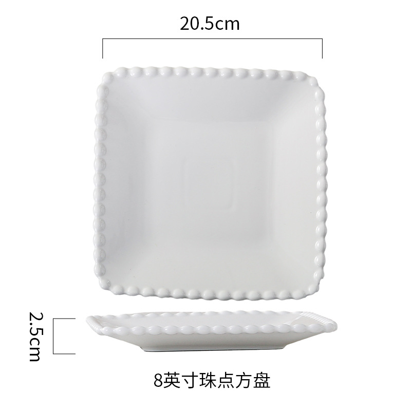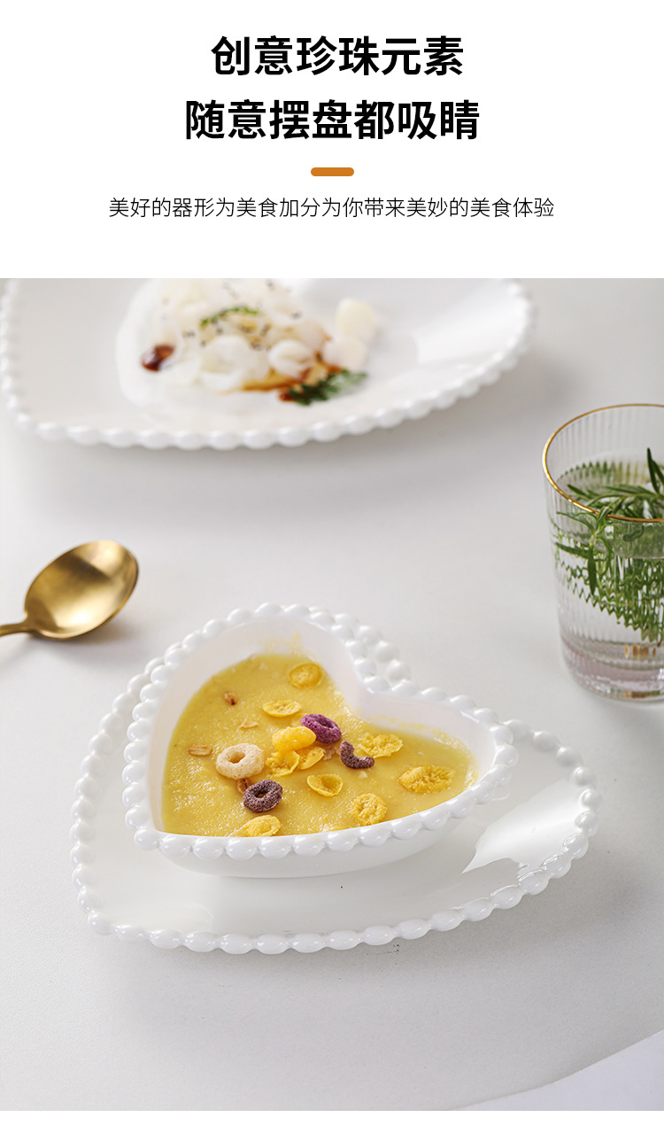 창조적 인 진주 가장자리 세라믹 가정용 쌀 그릇 아침 식사 접시 디저트 스낵 그릇 서양 음식 접시 간단한 케이크 간식 접시
