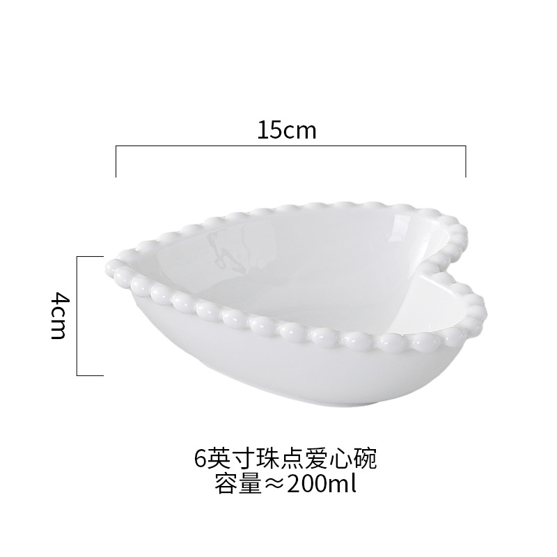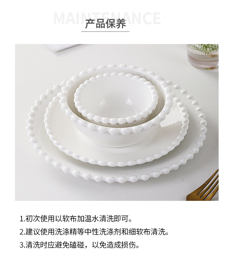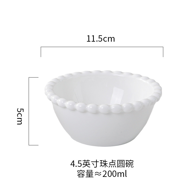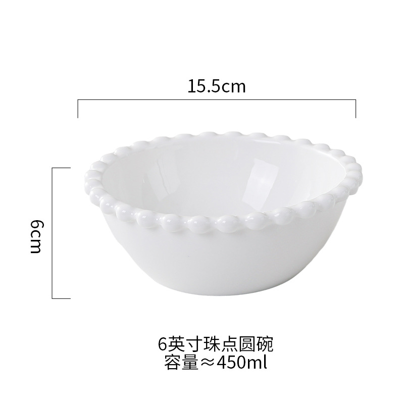 창조적 인 진주 가장자리 세라믹 가정용 쌀 그릇 아침 식사 접시 디저트 스낵 그릇 서양 음식 접시 간단한 케이크 간식 접시스토어 가기