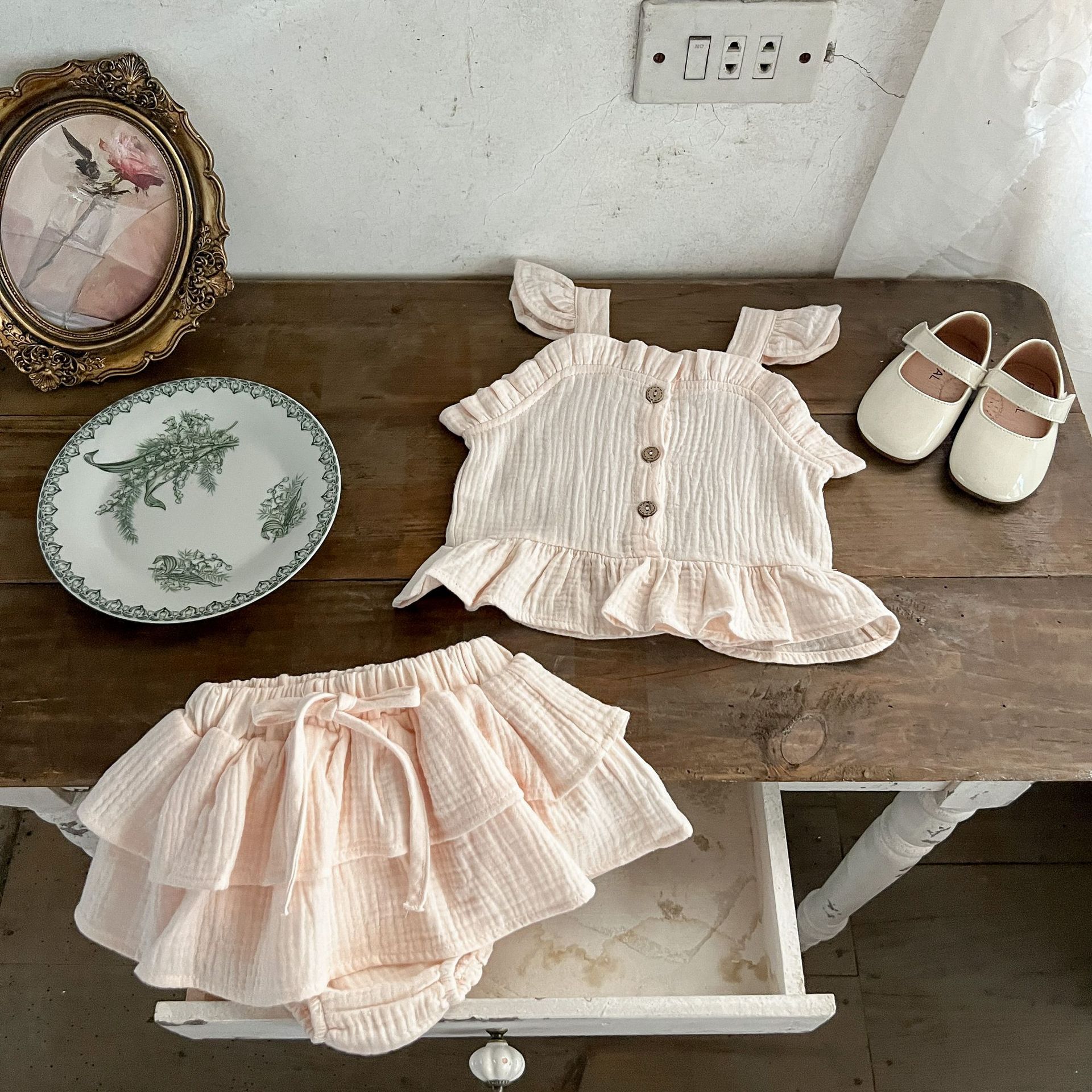 인 여자 세트 여름 아기의 사이버 연예인 여성 보물 여름 원피스 서양 스타일 투피스 신생아 유행 아동 의류스토어 가기