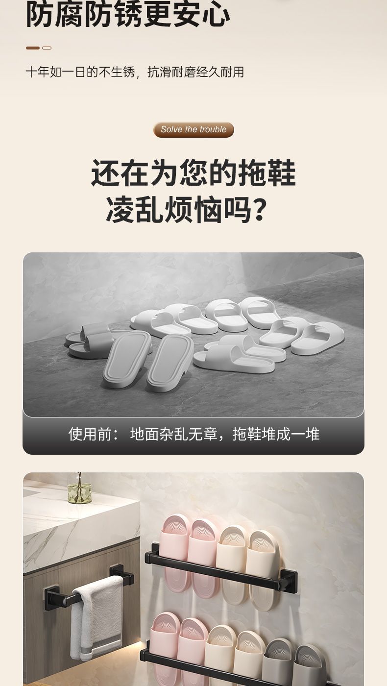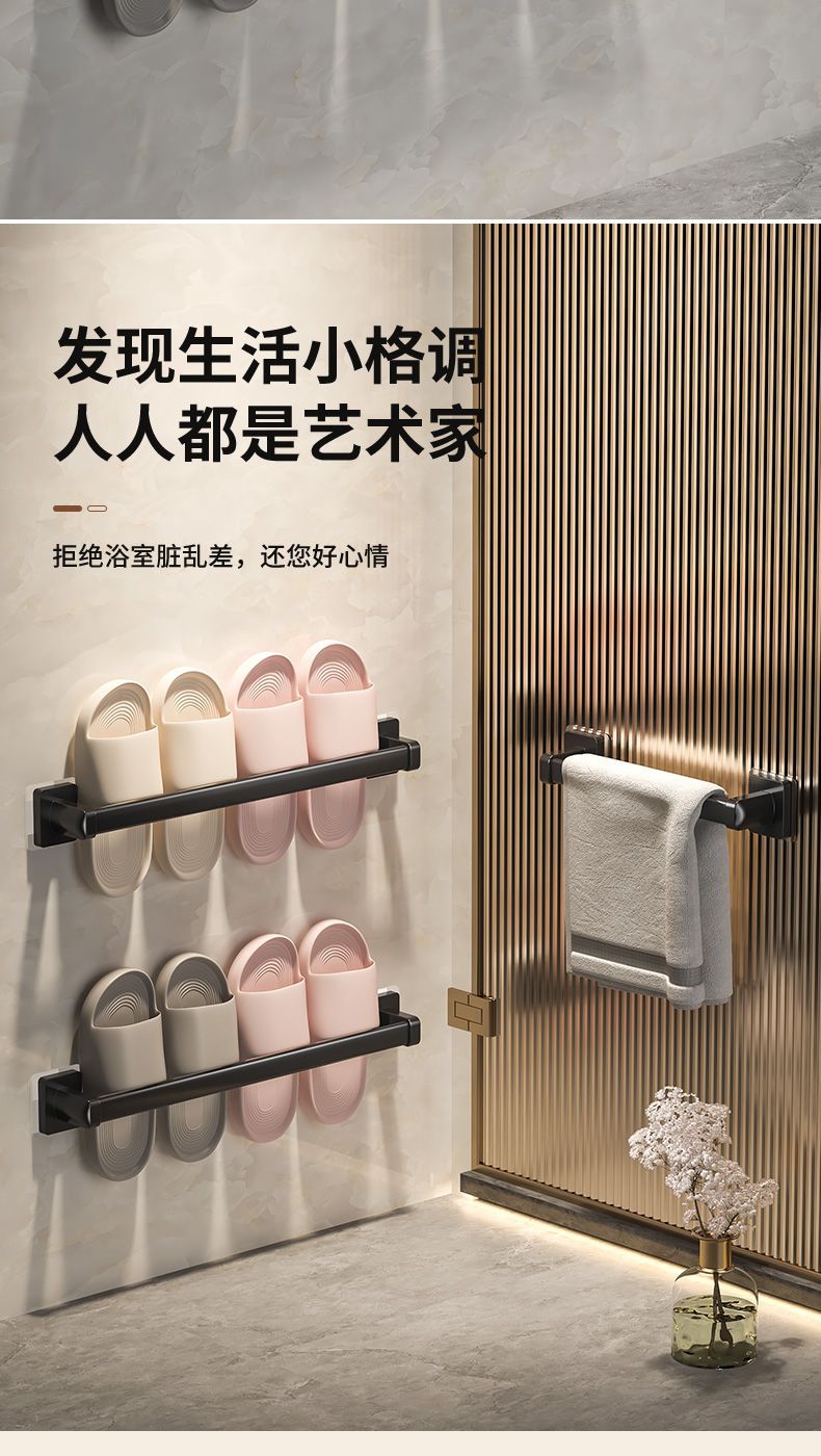 [보관 아티팩트] 욕실 슬리퍼 랙 벽걸이 비 천공 화장실 도어 슬리퍼 랙 벽