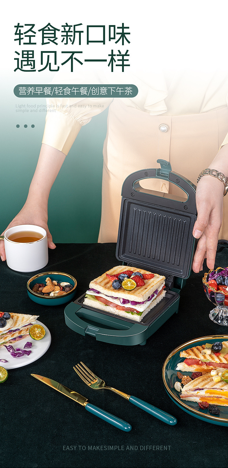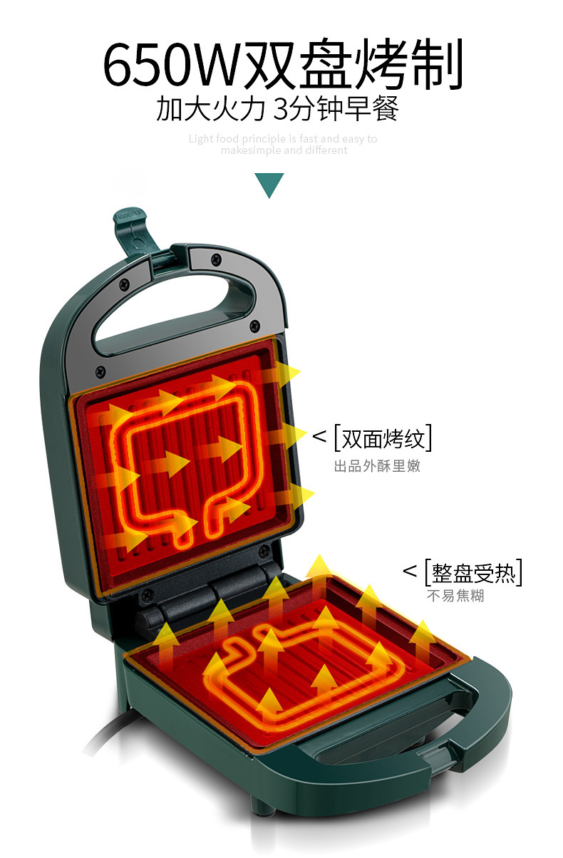 便携三明治机早餐机家用轻食机三文治机多功能神器吐司压烤面包机