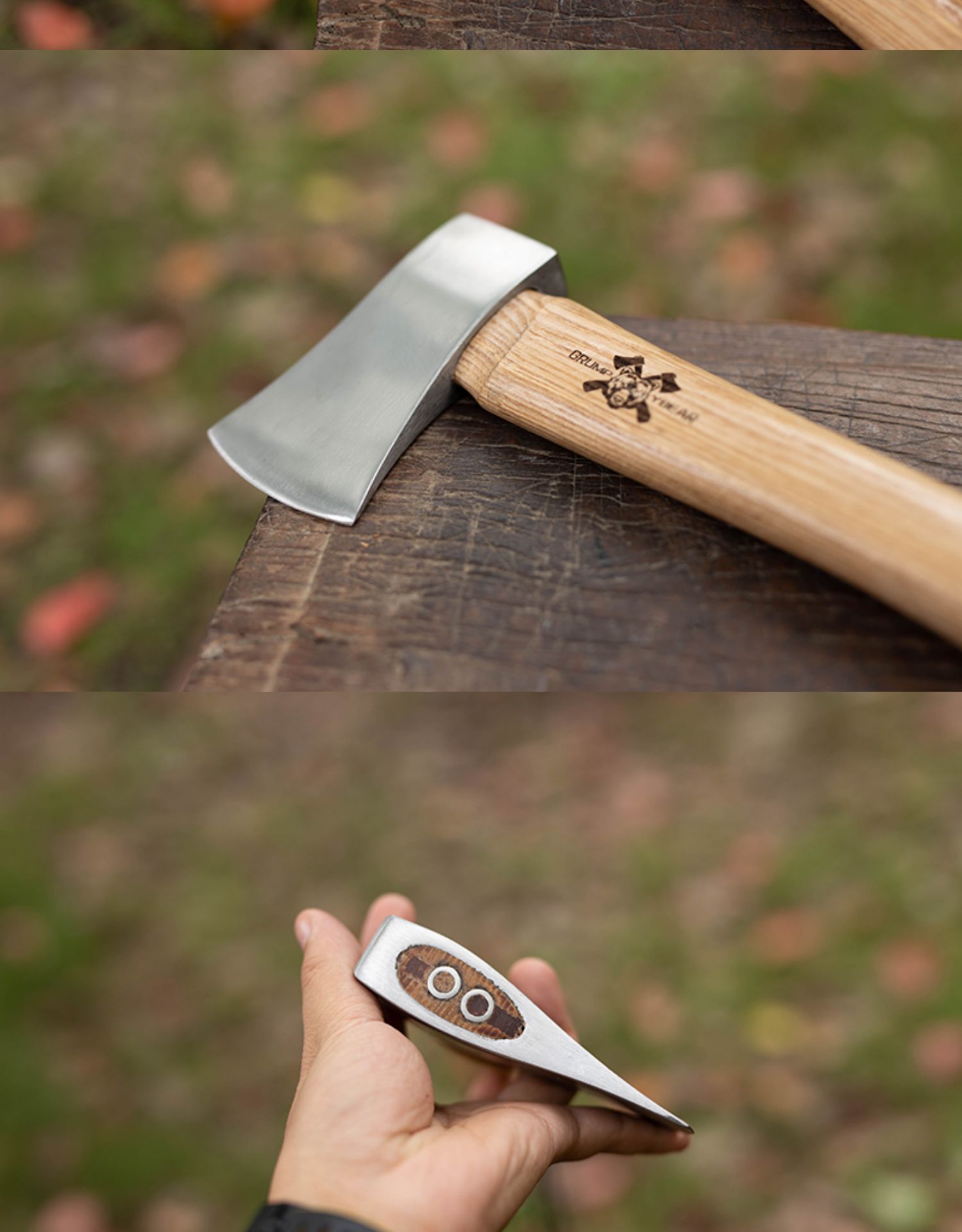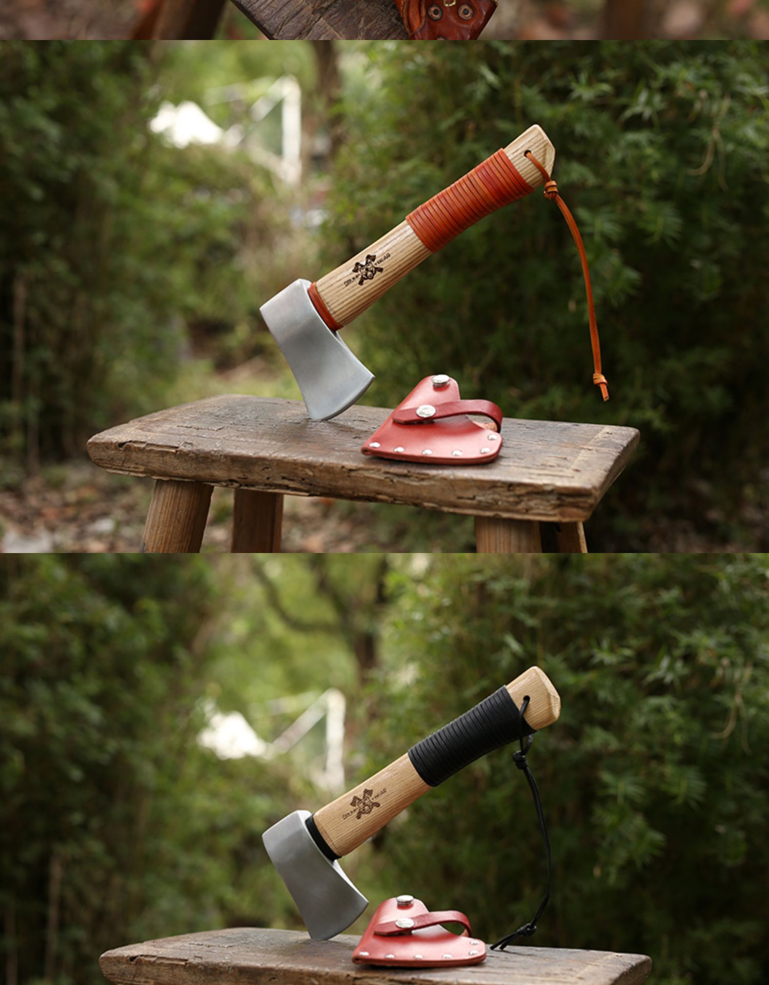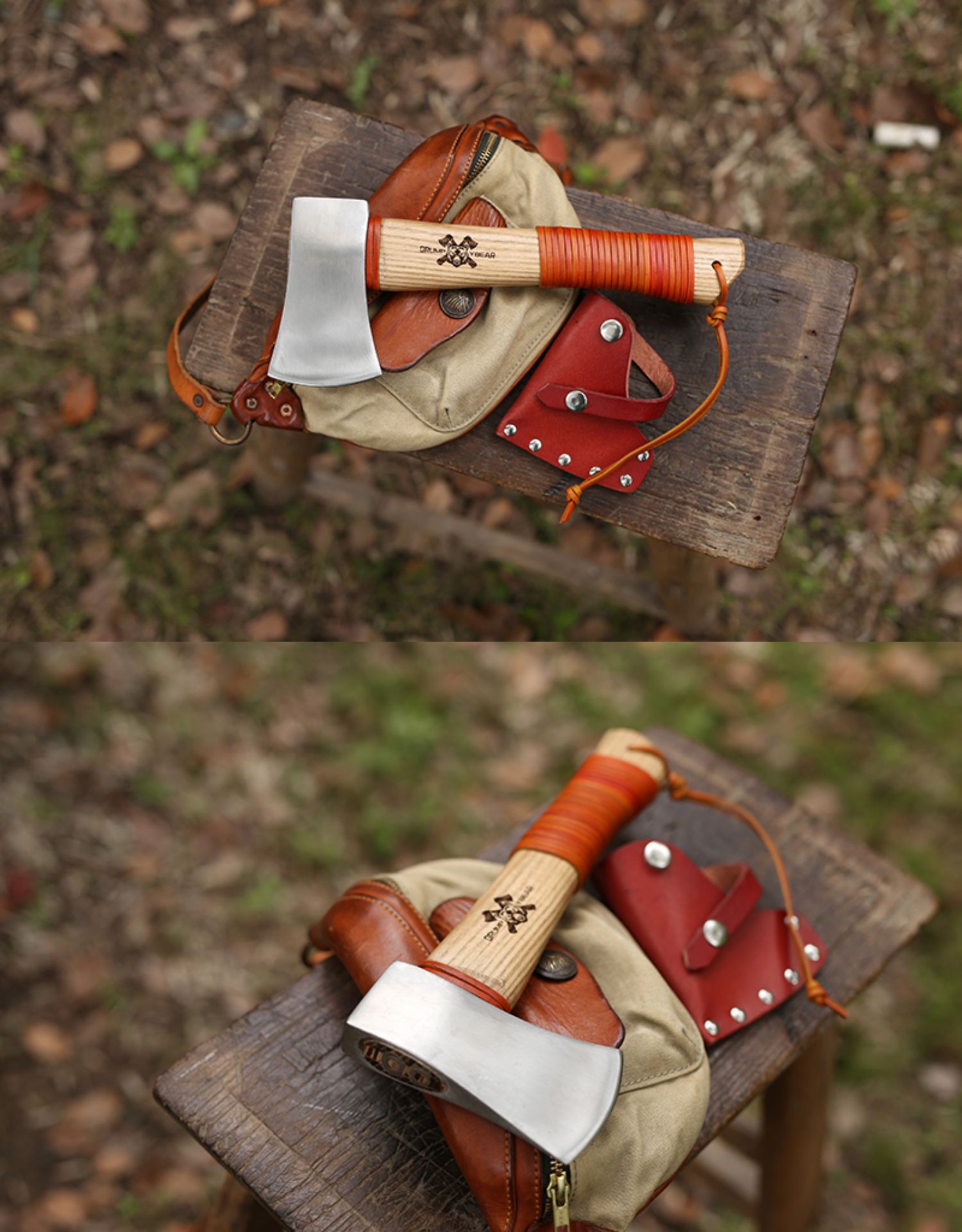 • 도끼 + 다크 브라운 타이 가죽 + 다크 브라운 가죽 케이스