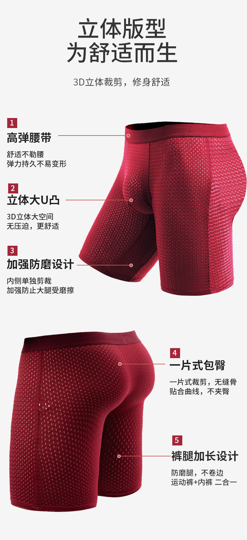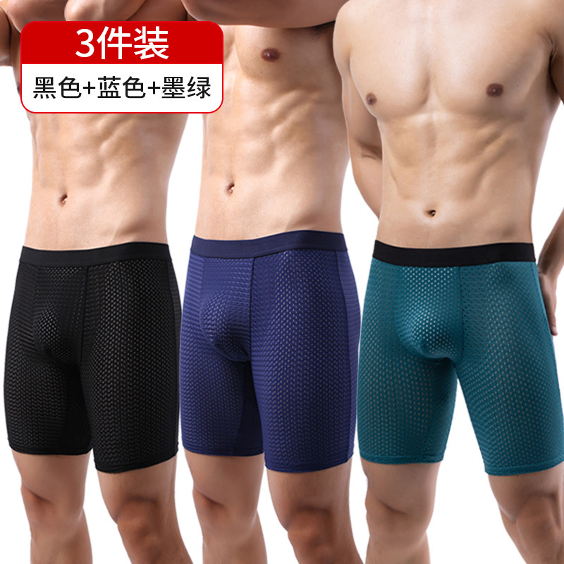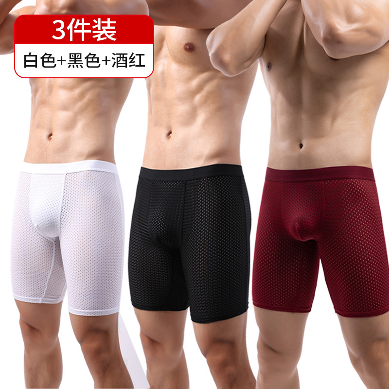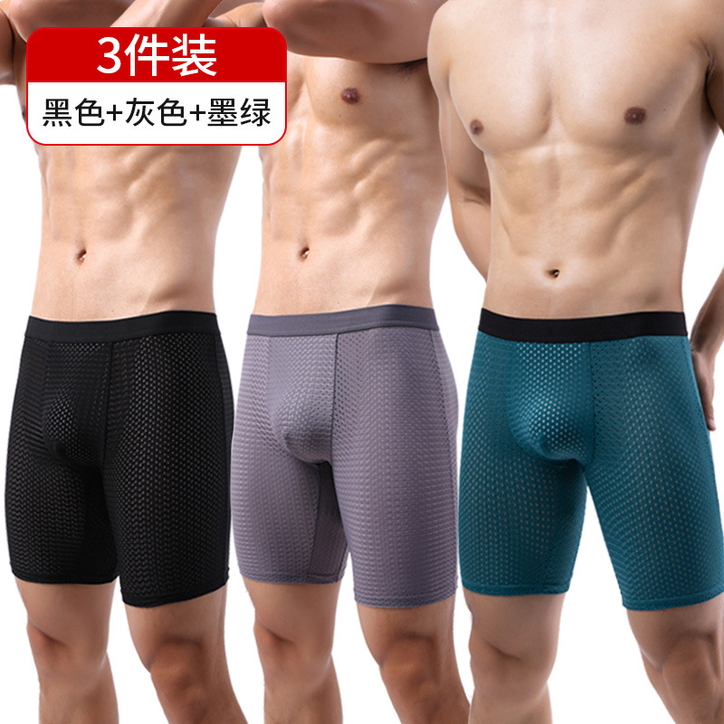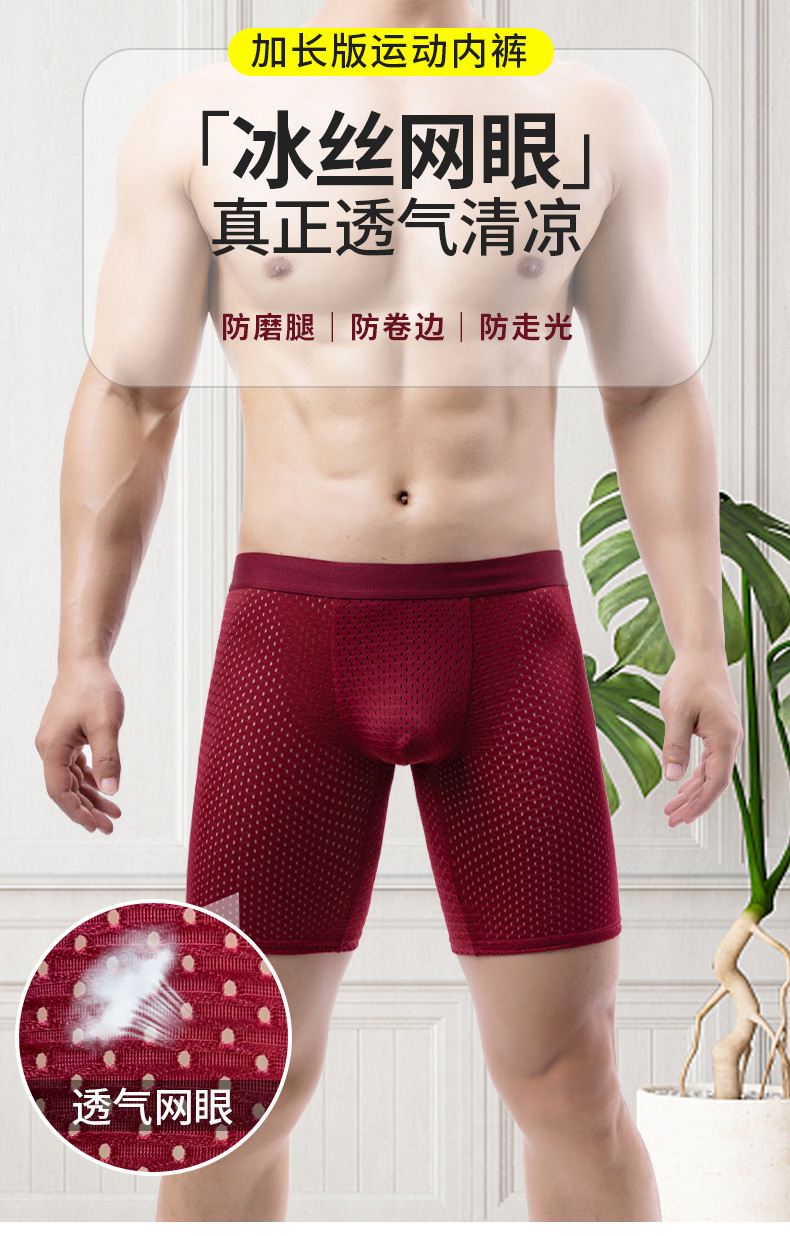 스포츠 속옷 남성용 여름 아이스 실크 통기성 복서 반바지 달리기 속건 반바지 길어진 내마모성 다리 비 마모 가랑이 바지