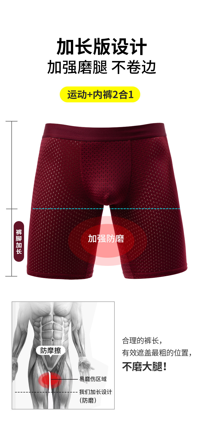 스포츠 속옷 남성용 여름 아이스 실크 통기성 복서 반바지 달리기 속건 반바지 길어진 내마모성 다리 비 마모 가랑이 바지스토어 가기