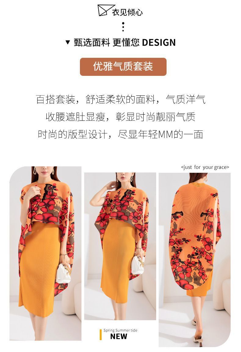 플리츠 패션 우아한 세트 여성의 봄과 가을 새로운 슬림 핏 원피스 프린트 숄 재킷 투피스 세트스토어 가기