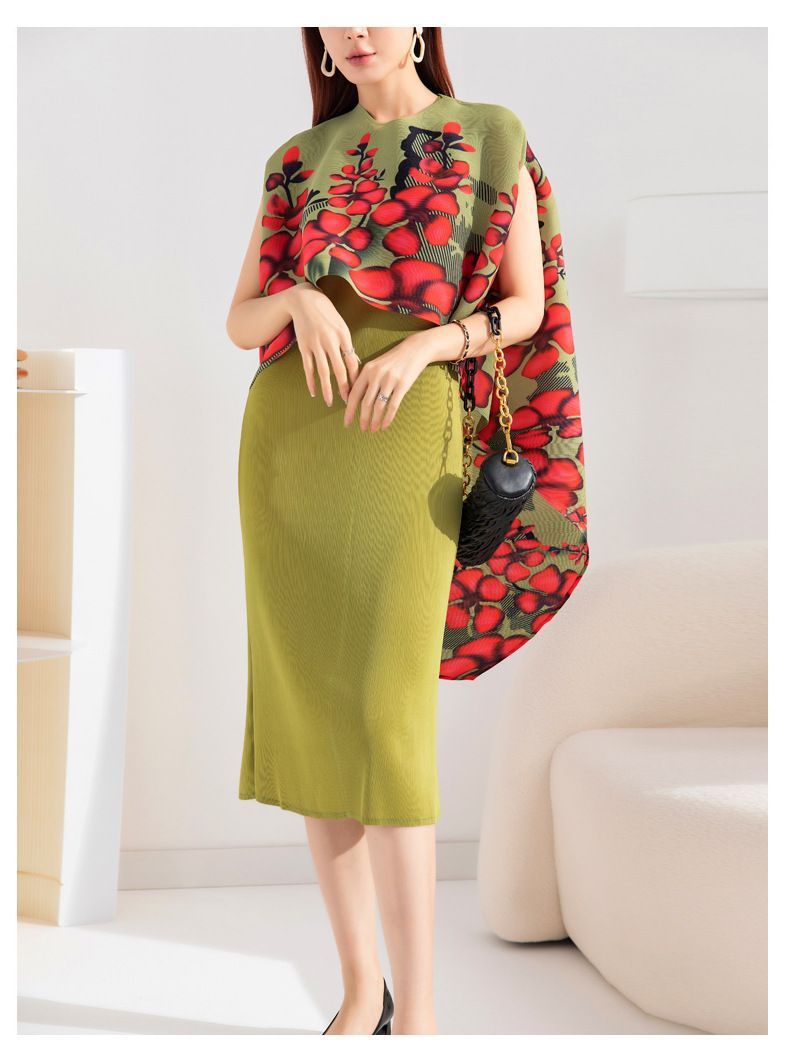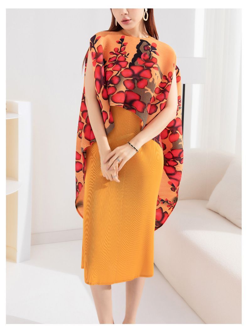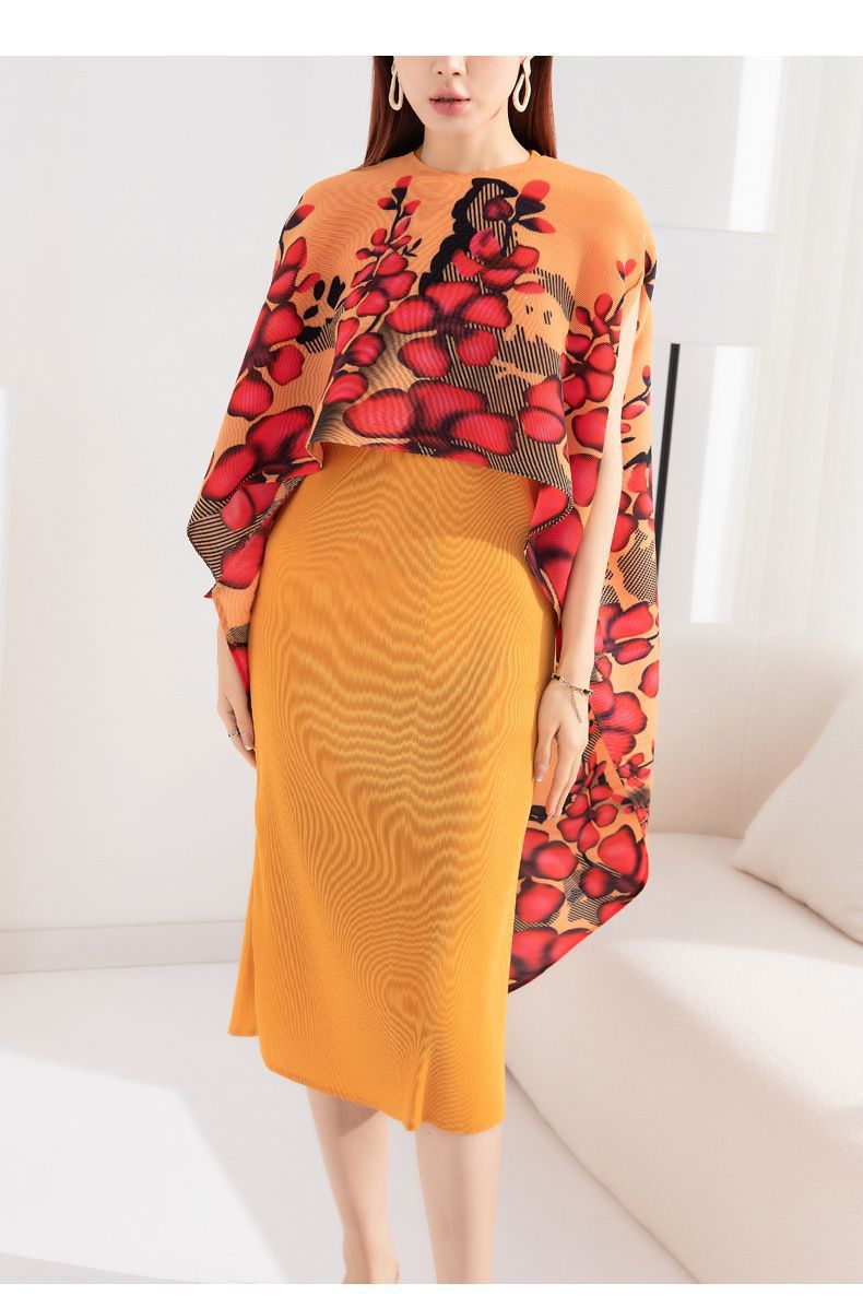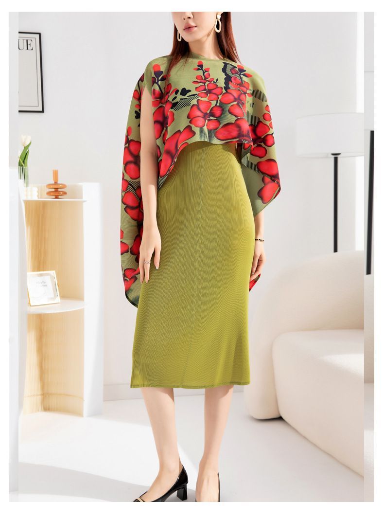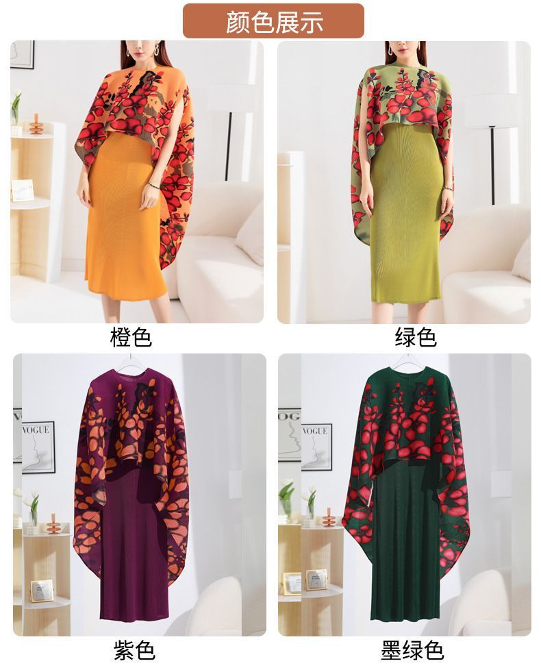 플리츠 패션 우아한 세트 여성의 봄과 가을 새로운 슬림 핏 원피스 프린트 숄 재킷 투피스 세트