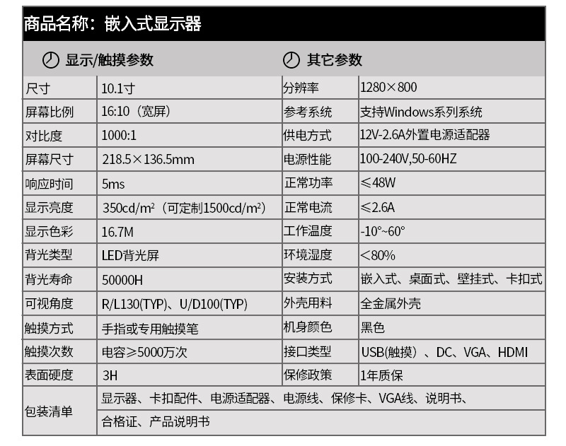 파이브 레인보우 10.1 "정전식 터치 디스플레이 휴대용 10 점 산업용 터치 내장형 정전식 디스플레이