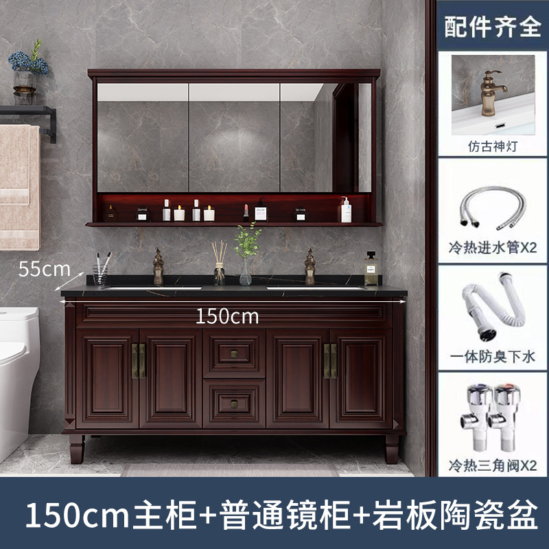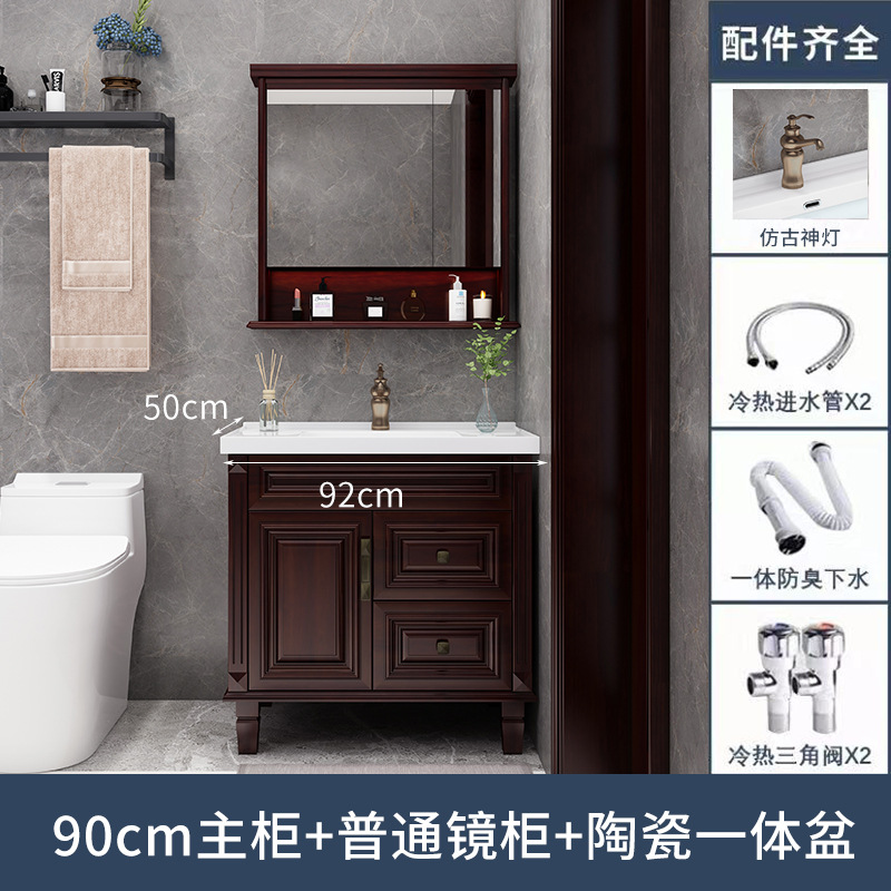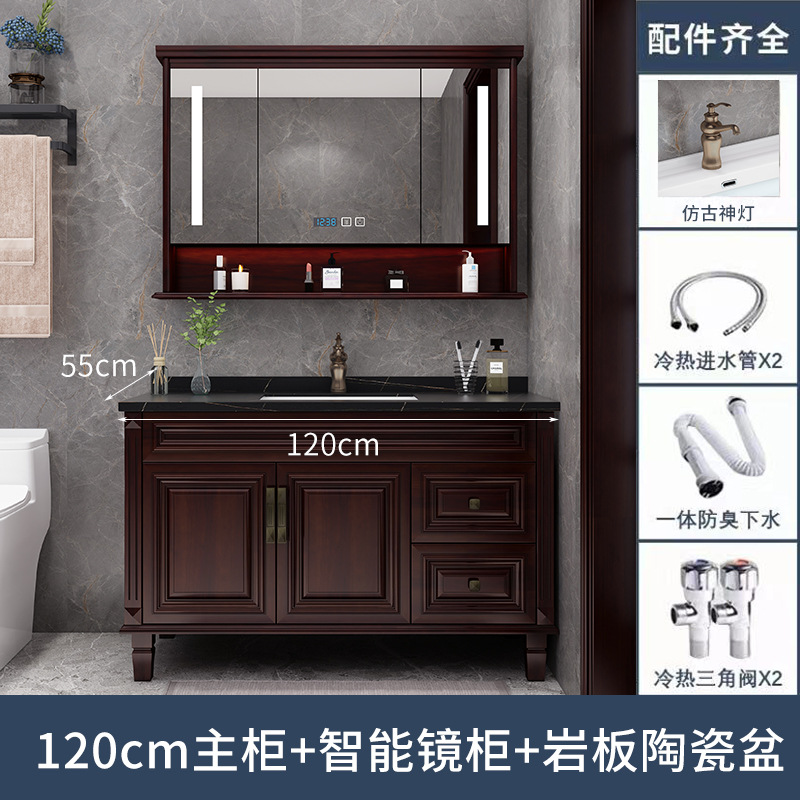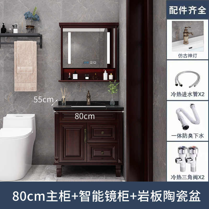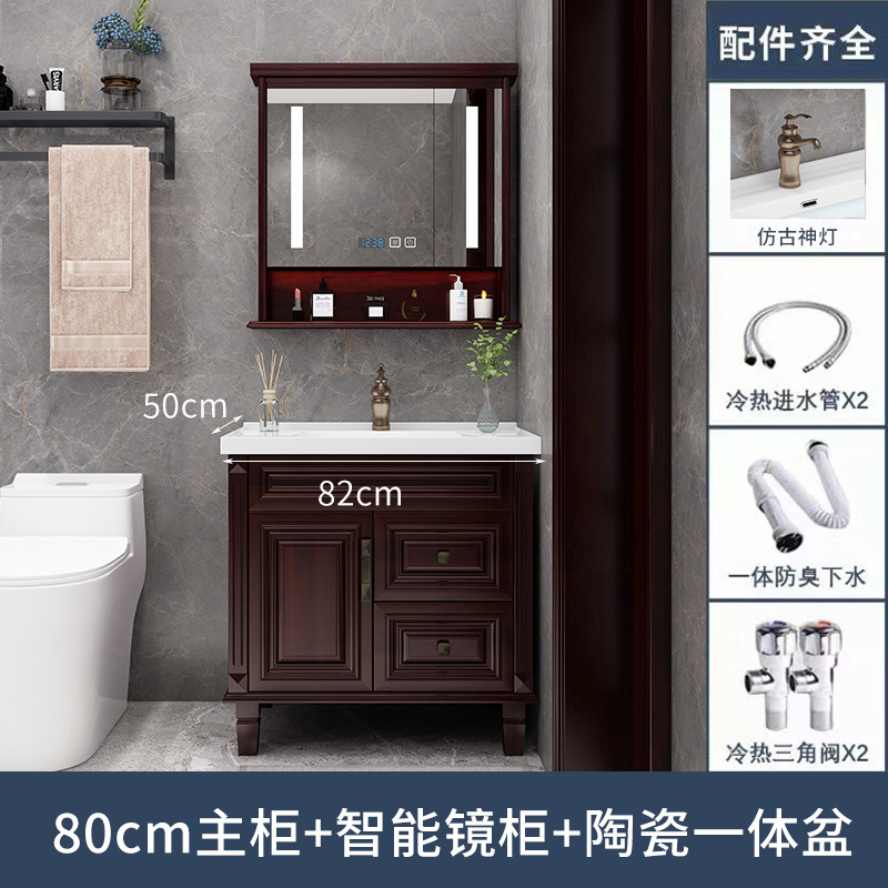 현대 새로운 중국 스타일 락 보드 욕실 캐비닛 오크 통합 세라믹 분지 욕실 단단한 나무 바닥 세척 및 세면 테이블 분지스토어 가기