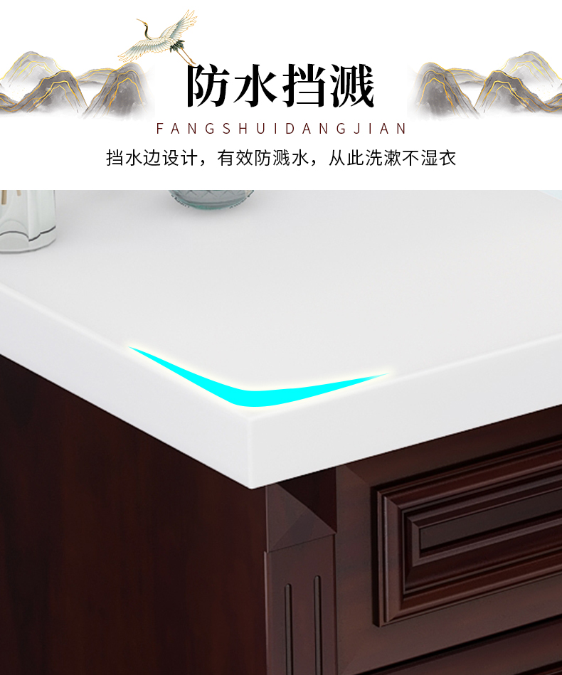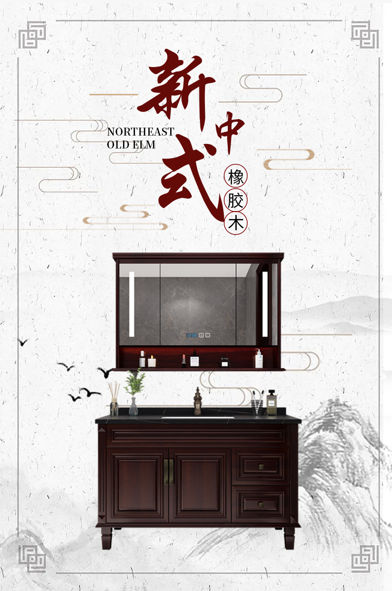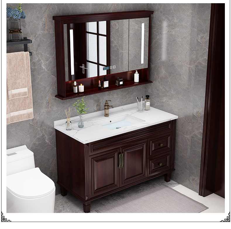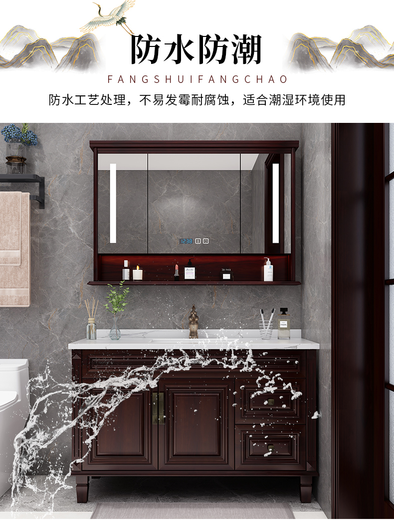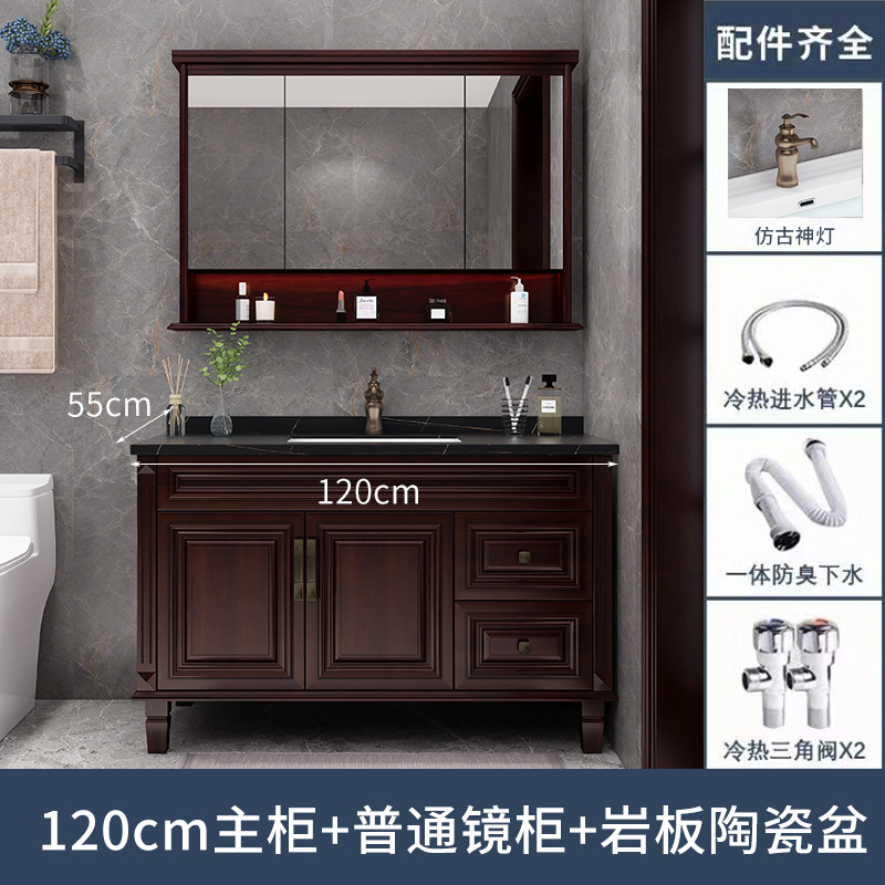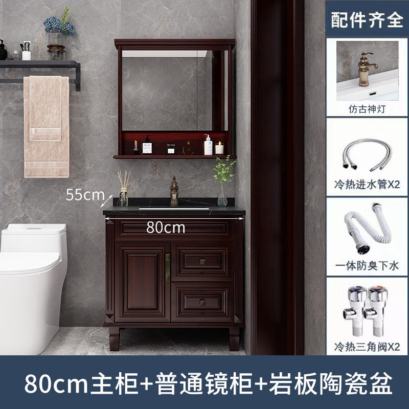현대 새로운 중국 스타일 락 보드 욕실 캐비닛 오크 통합 세라믹 분지 욕실 단단한 나무 바닥 세척 및 세면 테이블 분지
