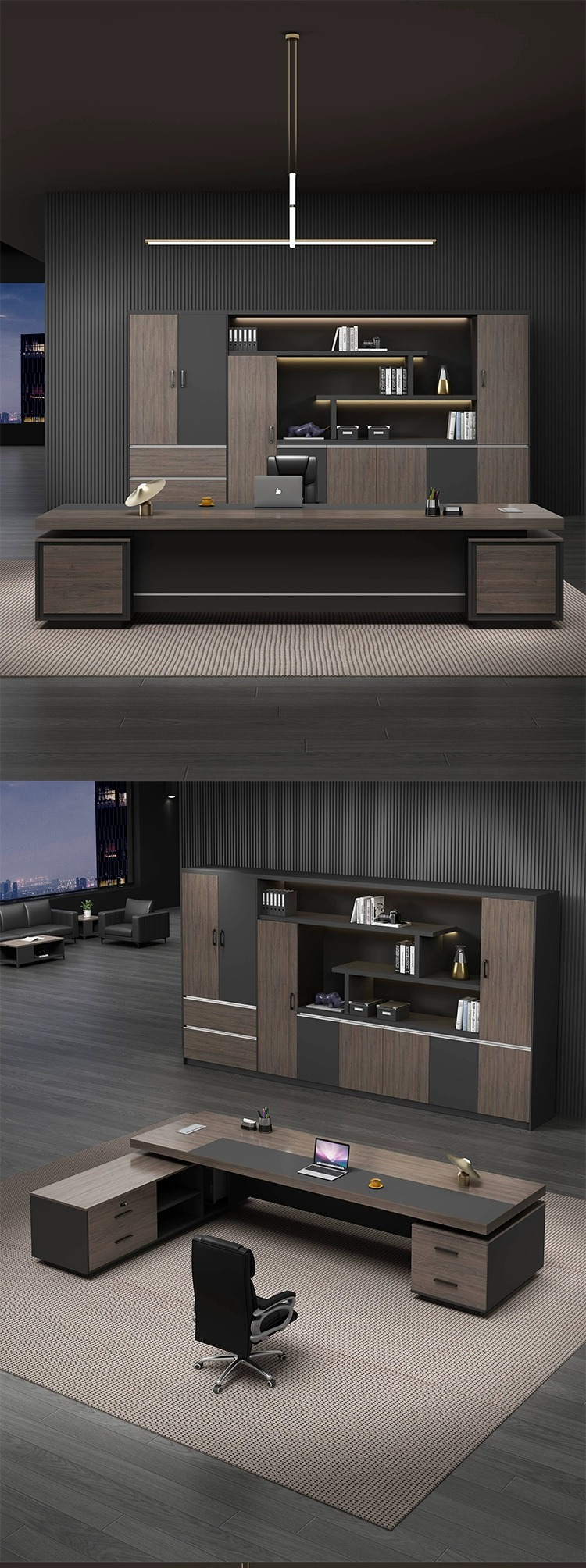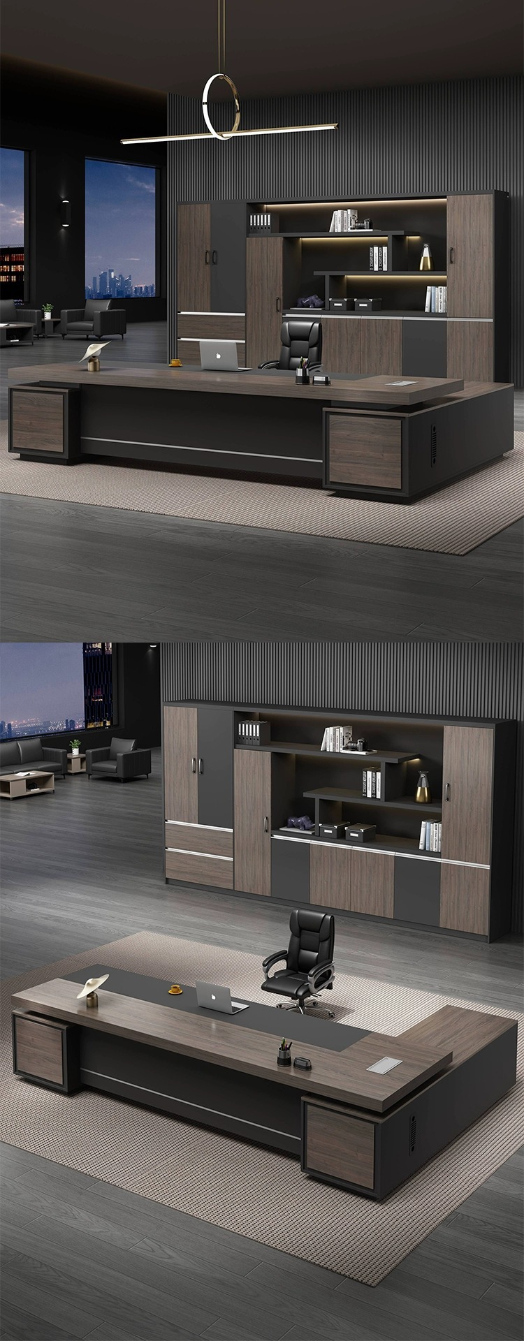 • 2.4 m 보스 테이블 + 6 도어 책장 + 보스 의자