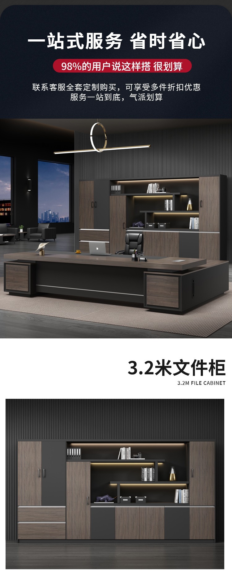 • 2.2 m 보스 테이블 + 6 도어 책장 + 보스 의자