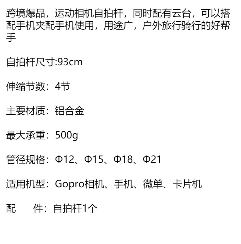 공장 직접 알루미늄 합금 텔레스코픽로드 야외 라이브 셀카 스틱 핸드 헬드 스포츠 카메라 고프로 셀카 스틱스토어 가기