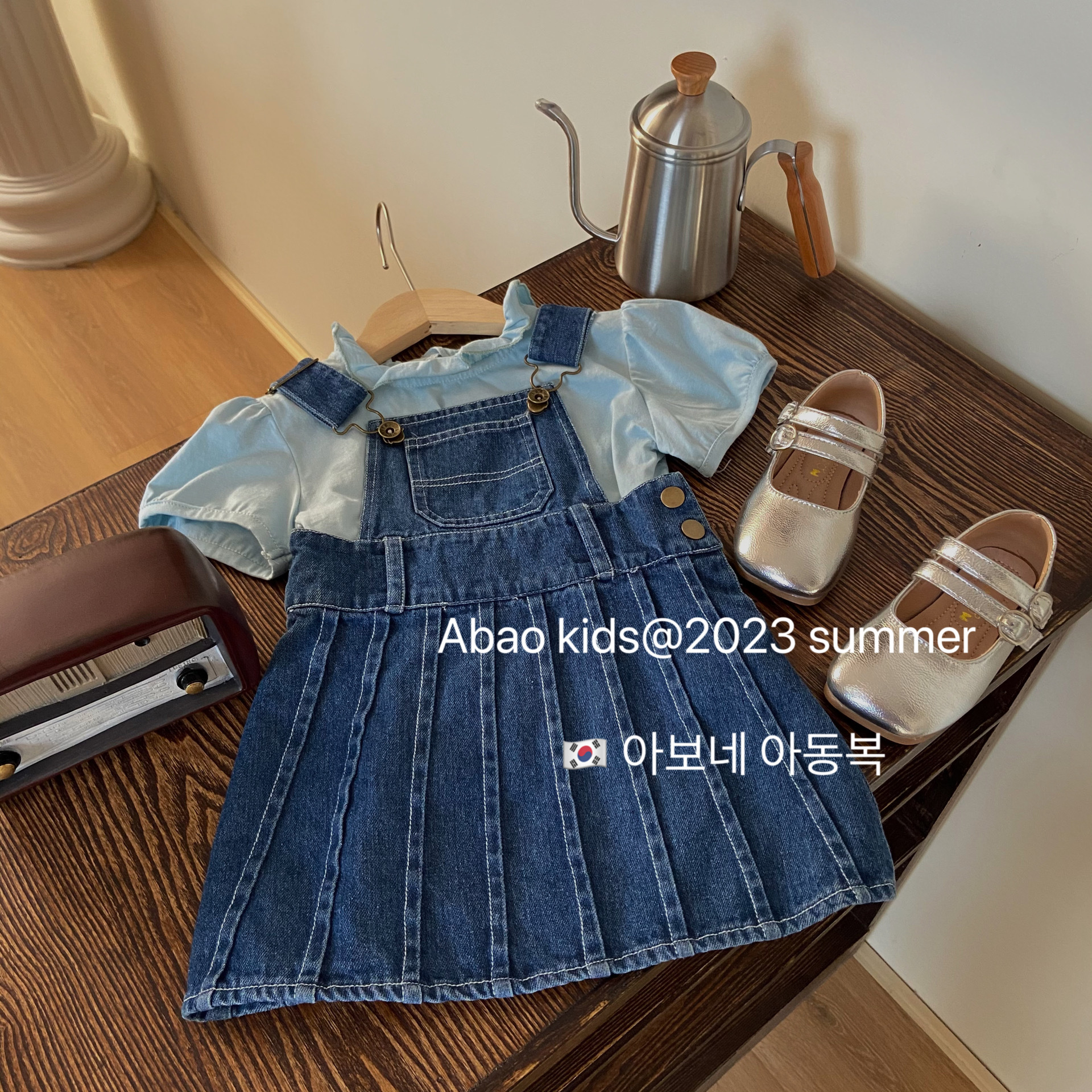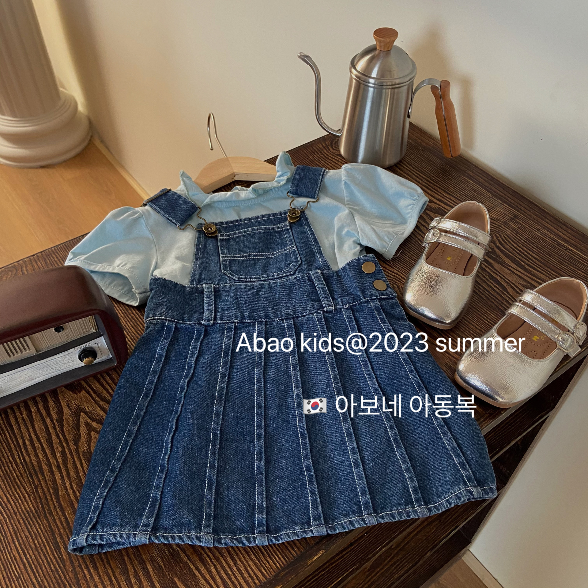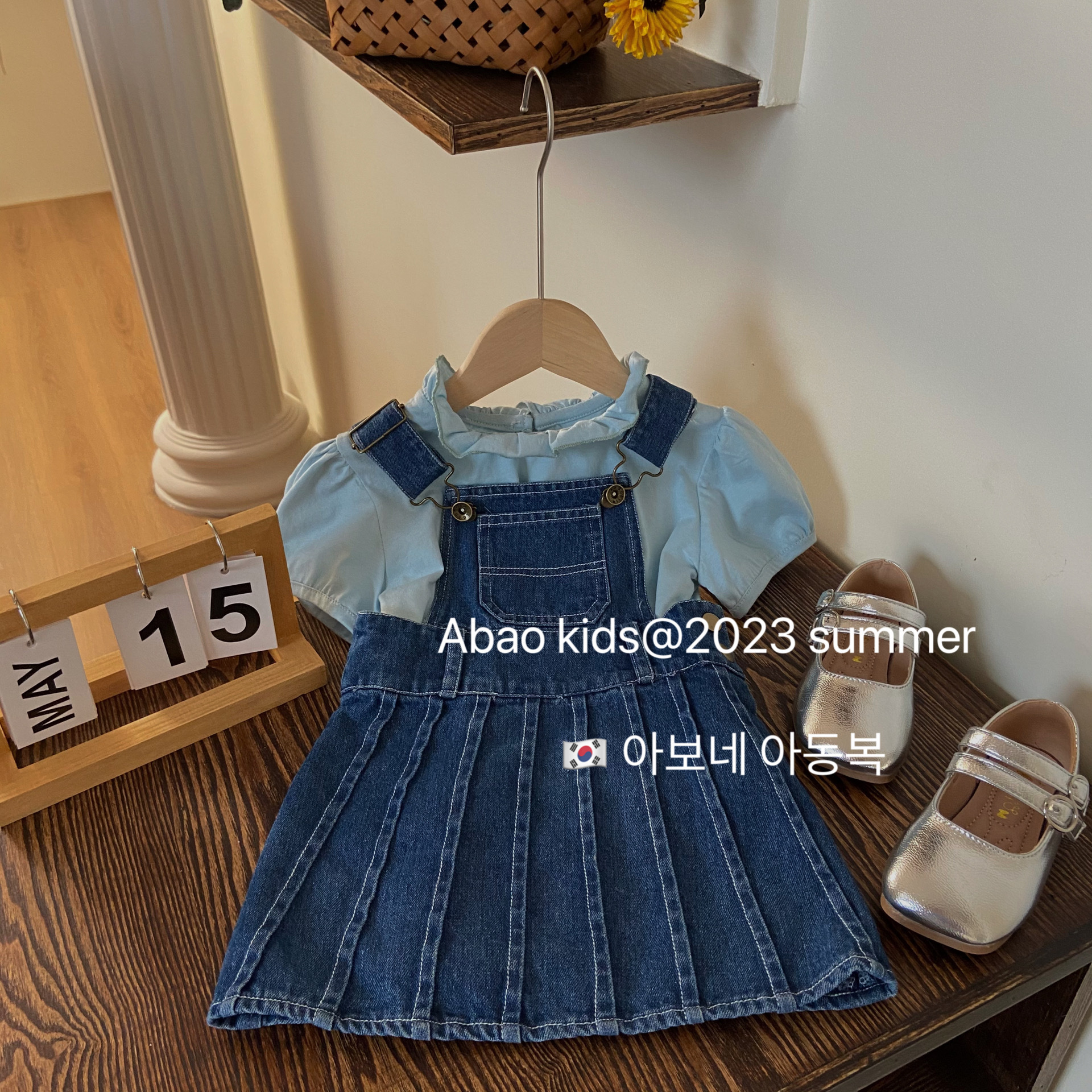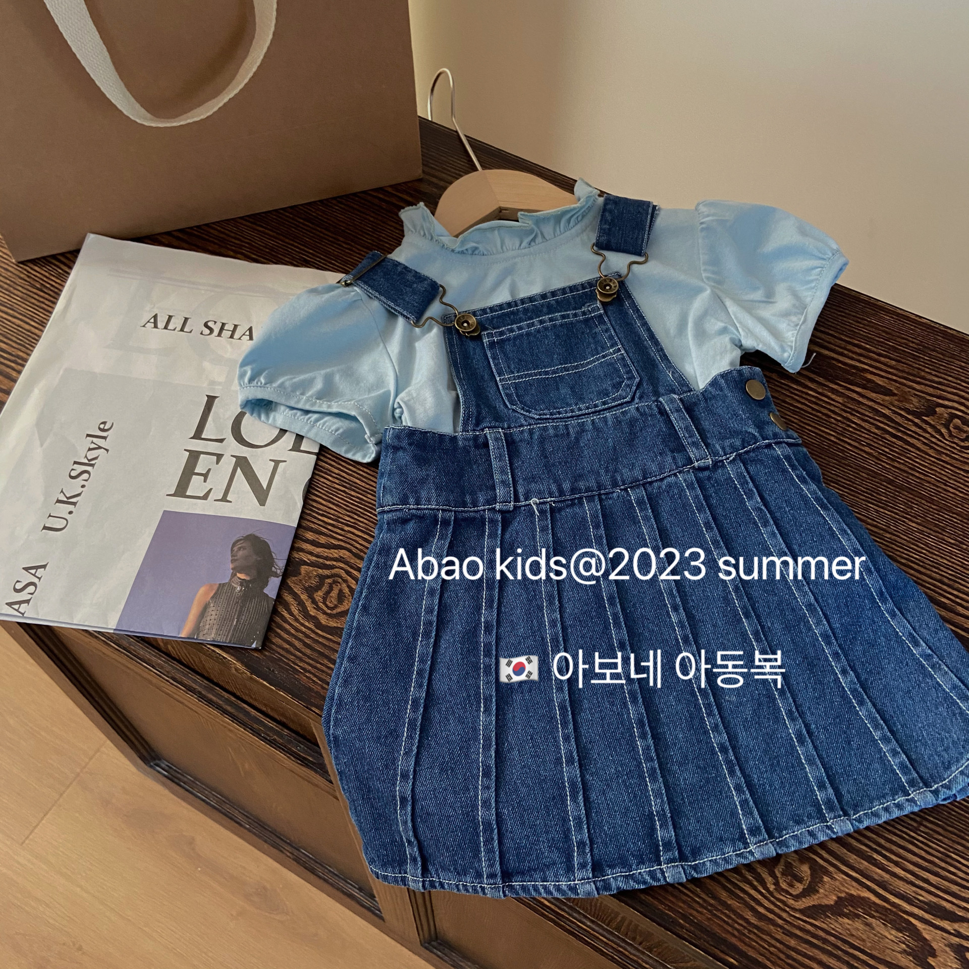 여자 여름 스트랩 원피스 세트 2023 새로운 스타일 한국 스타일 아기 여성 짧은 소매 스트랩 원피스 유행 투피스 세트스토어 가기