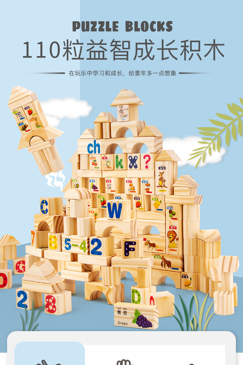 어린이 조기 교육 완구 나무 통 110 로그 소나무 글자 한자 동물 병음 빌딩 블록