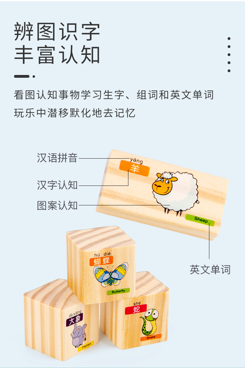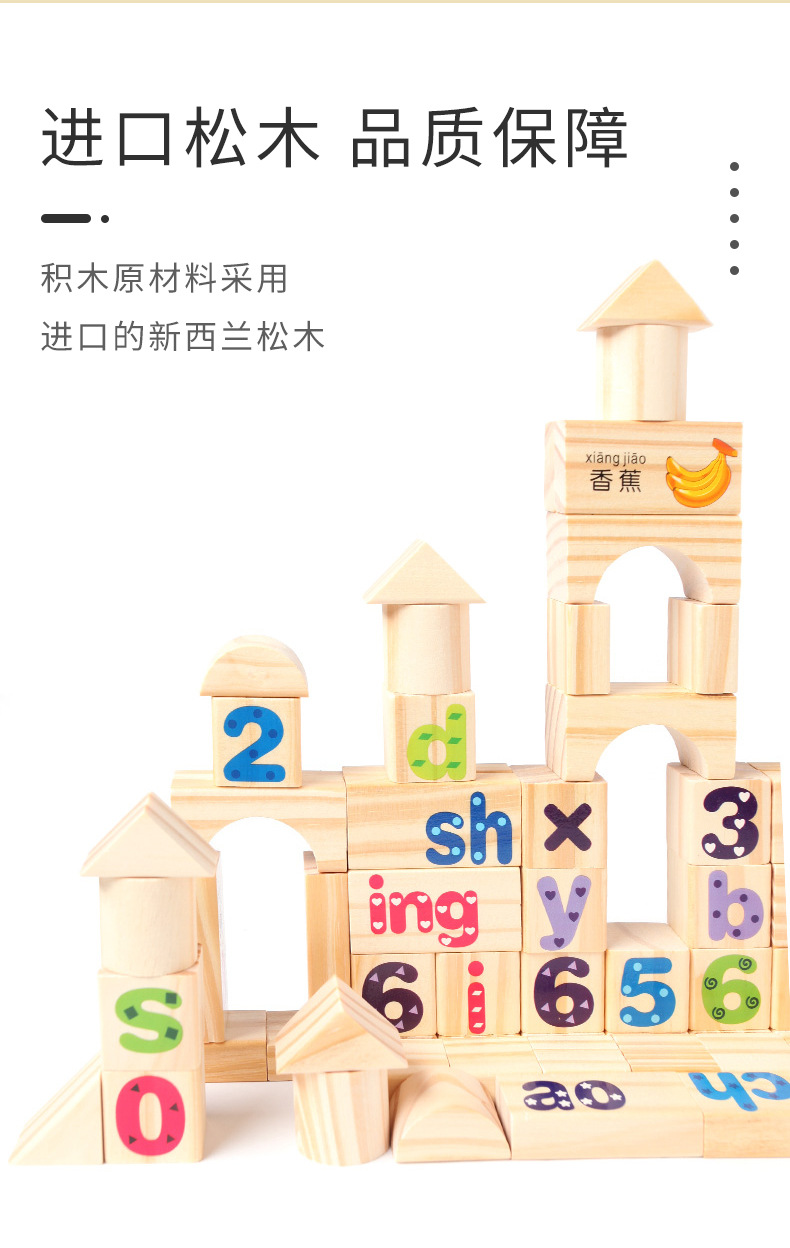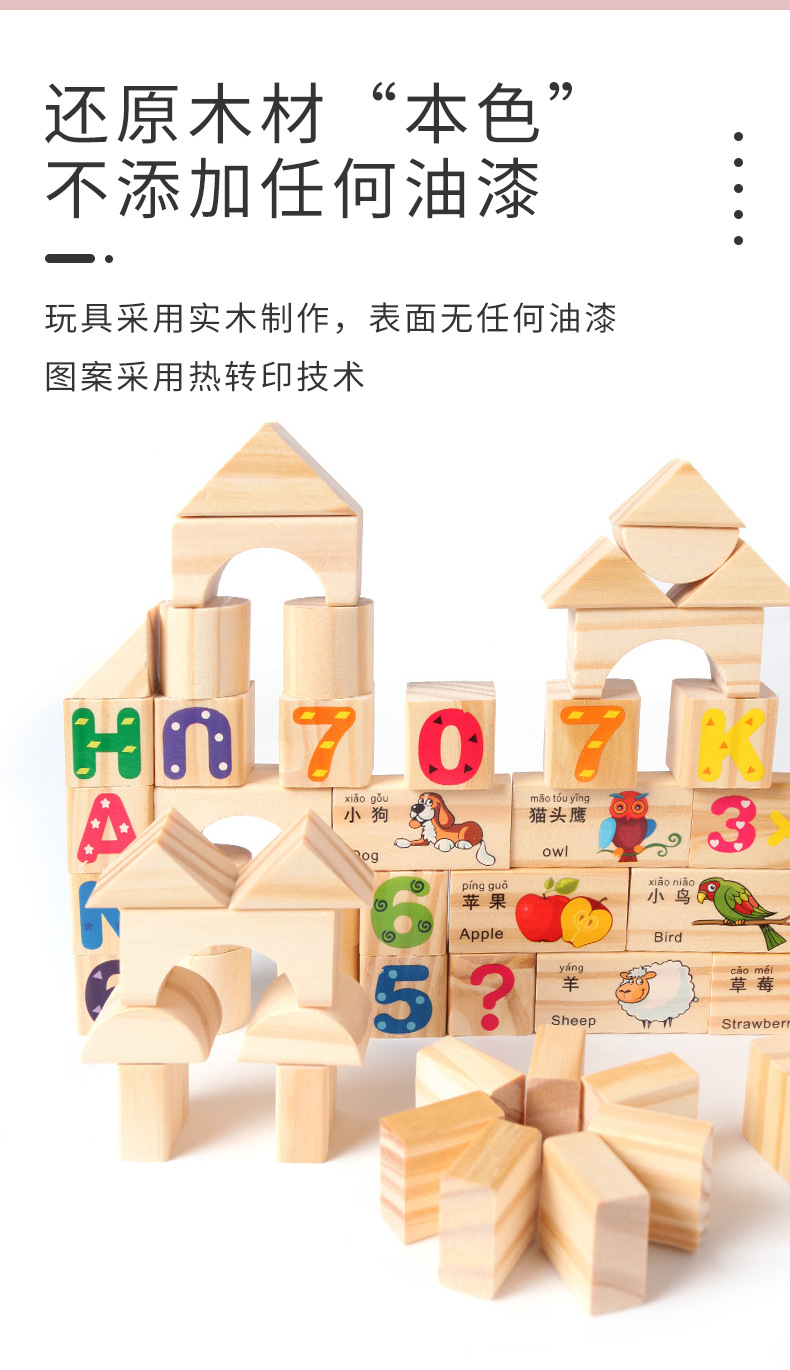 어린이 조기 교육 완구 나무 통 110 로그 소나무 글자 한자 동물 병음 빌딩 블록스토어 가기