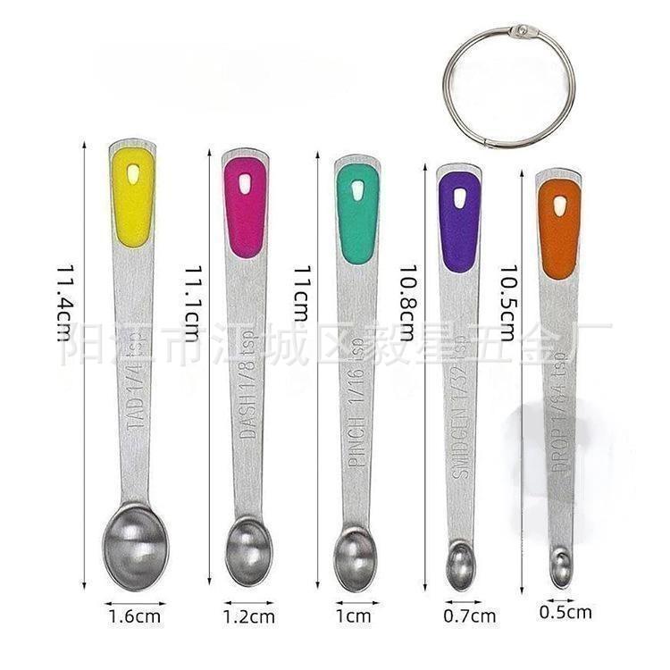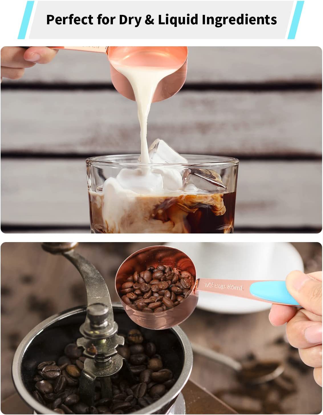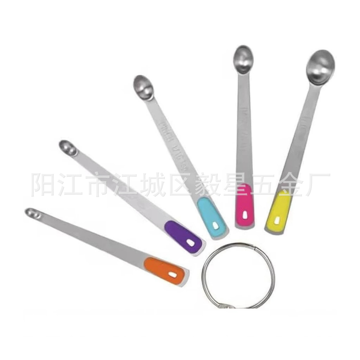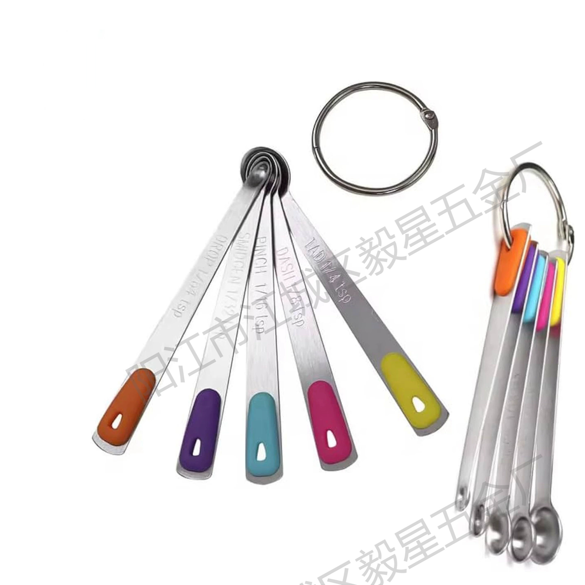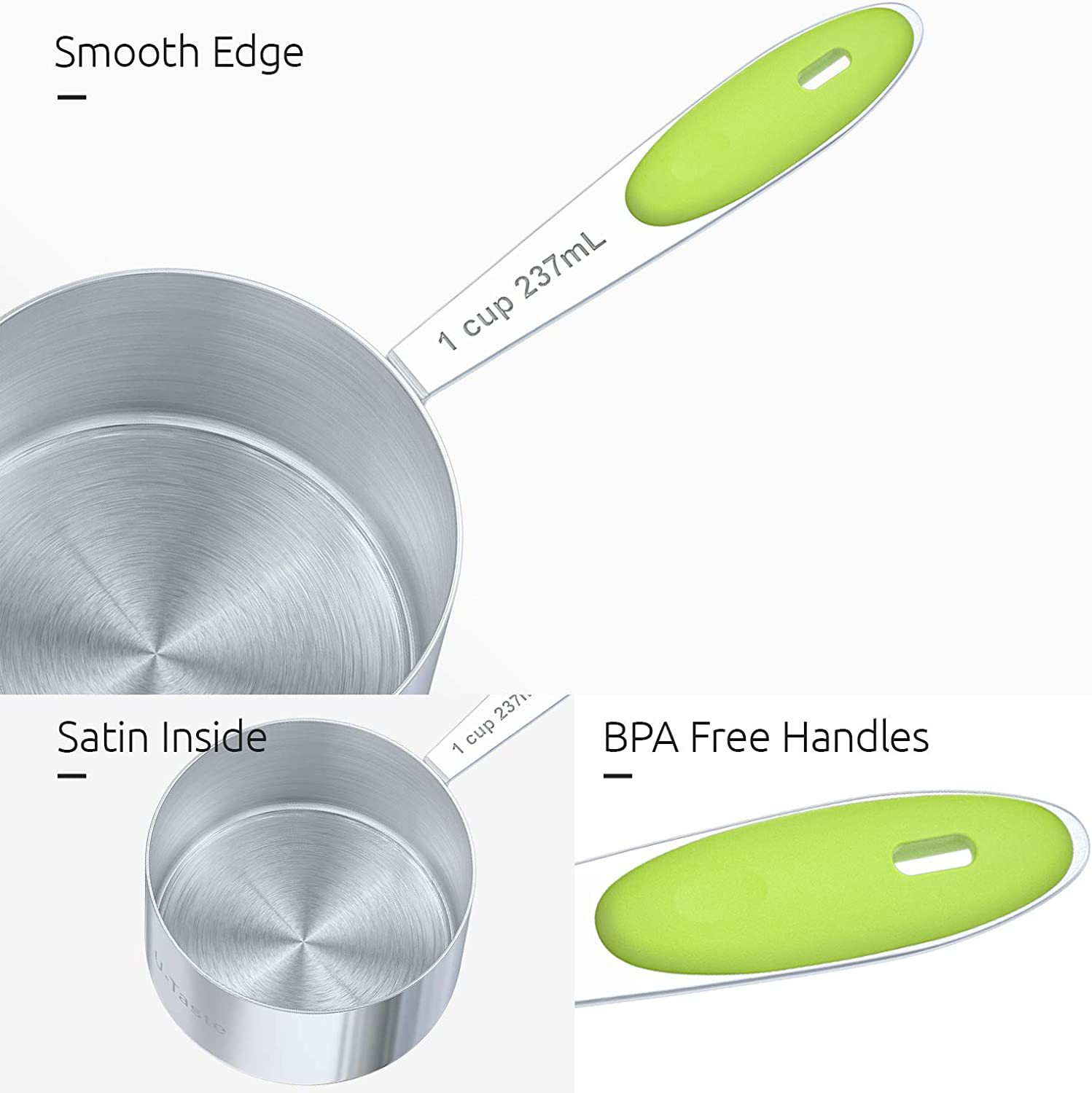 부드러운 실리콘 손잡이가 있는 가정용 주방 용품용 스테인레스 스틸 계량 컵과 스푼 10종 네스팅 메탈 세트