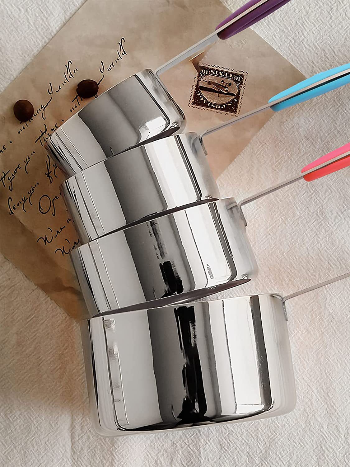 부드러운 실리콘 손잡이가 있는 가정용 주방 용품용 스테인레스 스틸 계량 컵과 스푼 10종 네스팅 메탈 세트스토어 가기