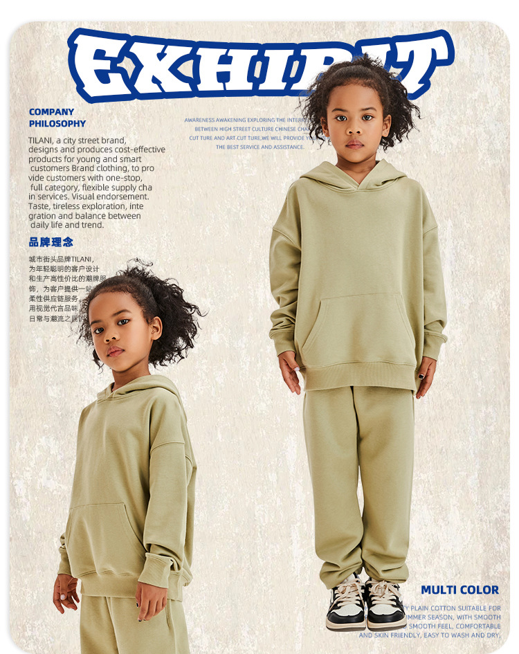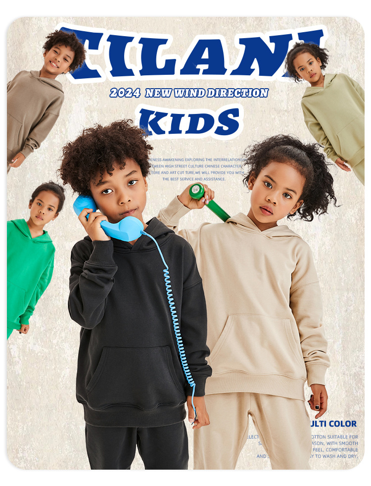 TILANI 아동복 유럽과 미국 24 봄 새로운 340G 테리 코튼 소년과 소녀 후드 웨어