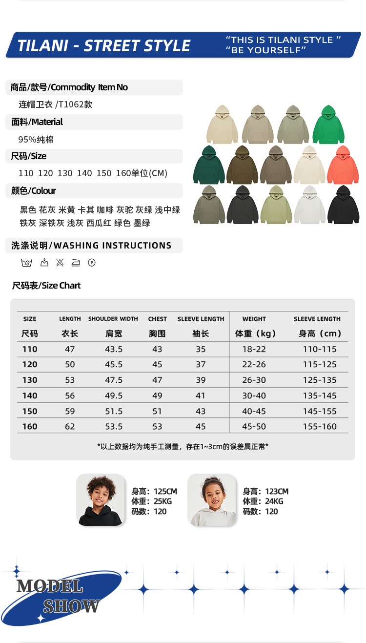 TILANI 아동복 유럽과 미국 24 봄 새로운 340G 테리 코튼 소년과 소녀 후드 웨어스토어 가기