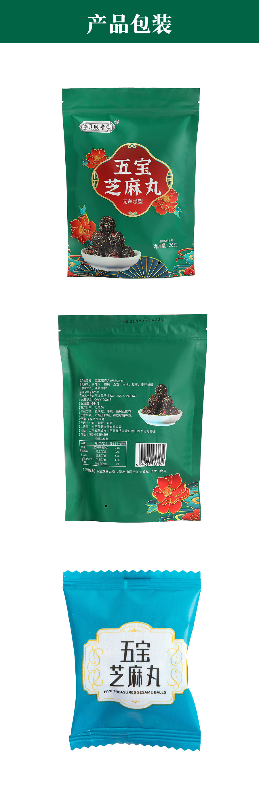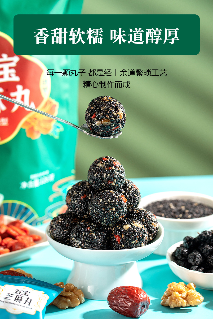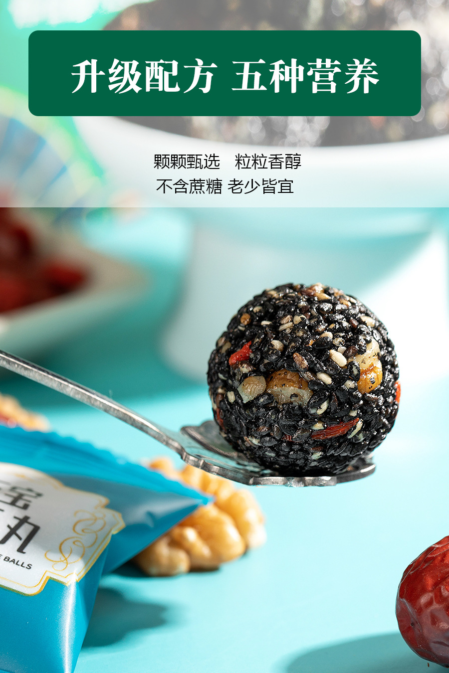 Wubao 블랙 참깨 알약 전체 126g 자당이없는 참깨 볼 그물 빨간 간식 Bigu 알약 무한 참깨 알약스토어 가기