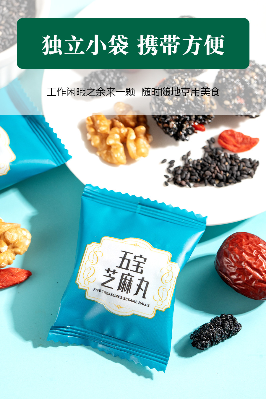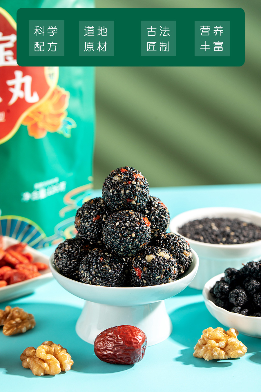 Wubao 블랙 참깨 알약 전체 126g 자당이없는 참깨 볼 그물 빨간 간식 Bigu 알약 무한 참깨 알약