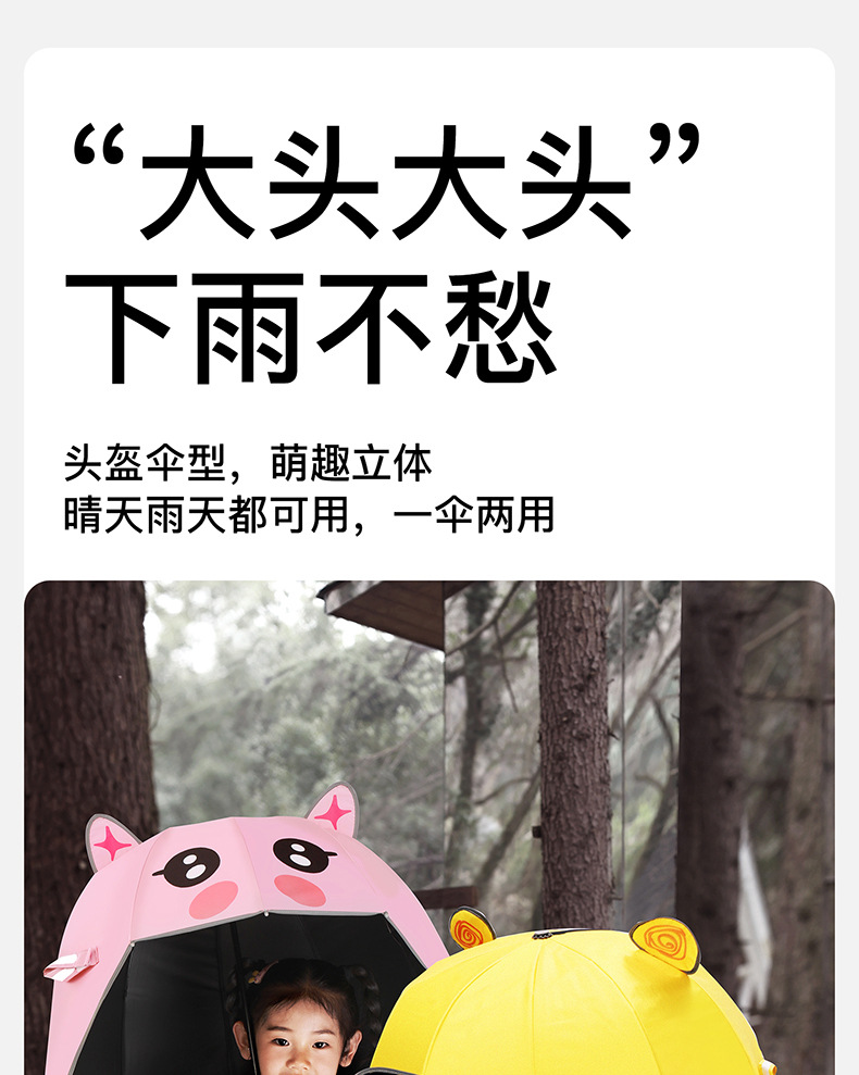 Mu Meng 어린이 우산 맑고 비 이중 사용 소녀 사이버 연예인 헬멧 우산 소년 UV 보호 아기 긴 손잡이 양산 우산스토어 가기
