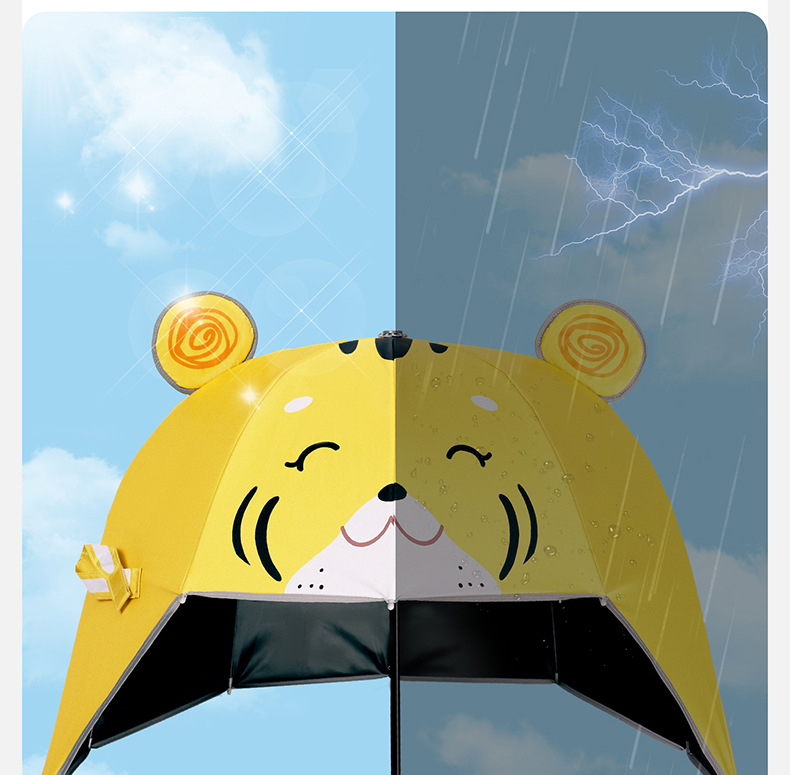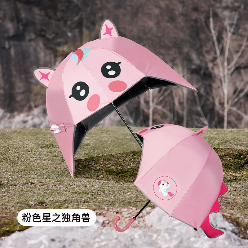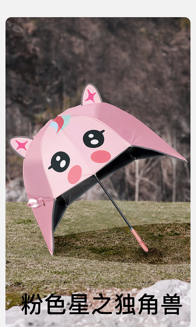Mu Meng 어린이 우산 맑고 비 이중 사용 소녀 사이버 연예인 헬멧 우산 소년 UV 보호 아기 긴 손잡이 양산 우산