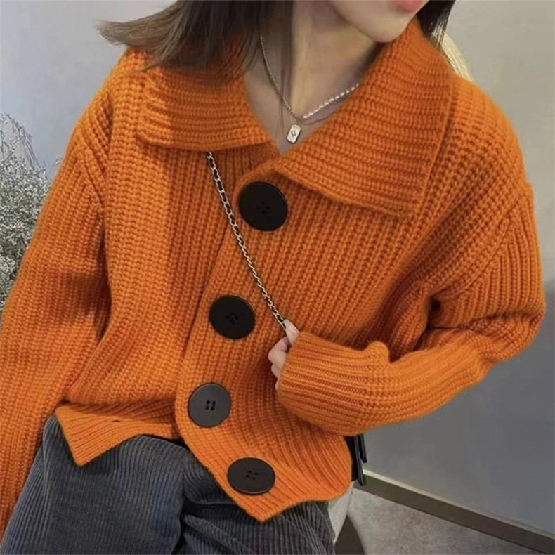 여성을위한 한국식 게으른 스타일 스웨터 재킷 2025 가을, 겨울 여성을위한 새로운 느슨한 연령 감소 옷깃 대형 버튼 니트 카디건스토어 가기