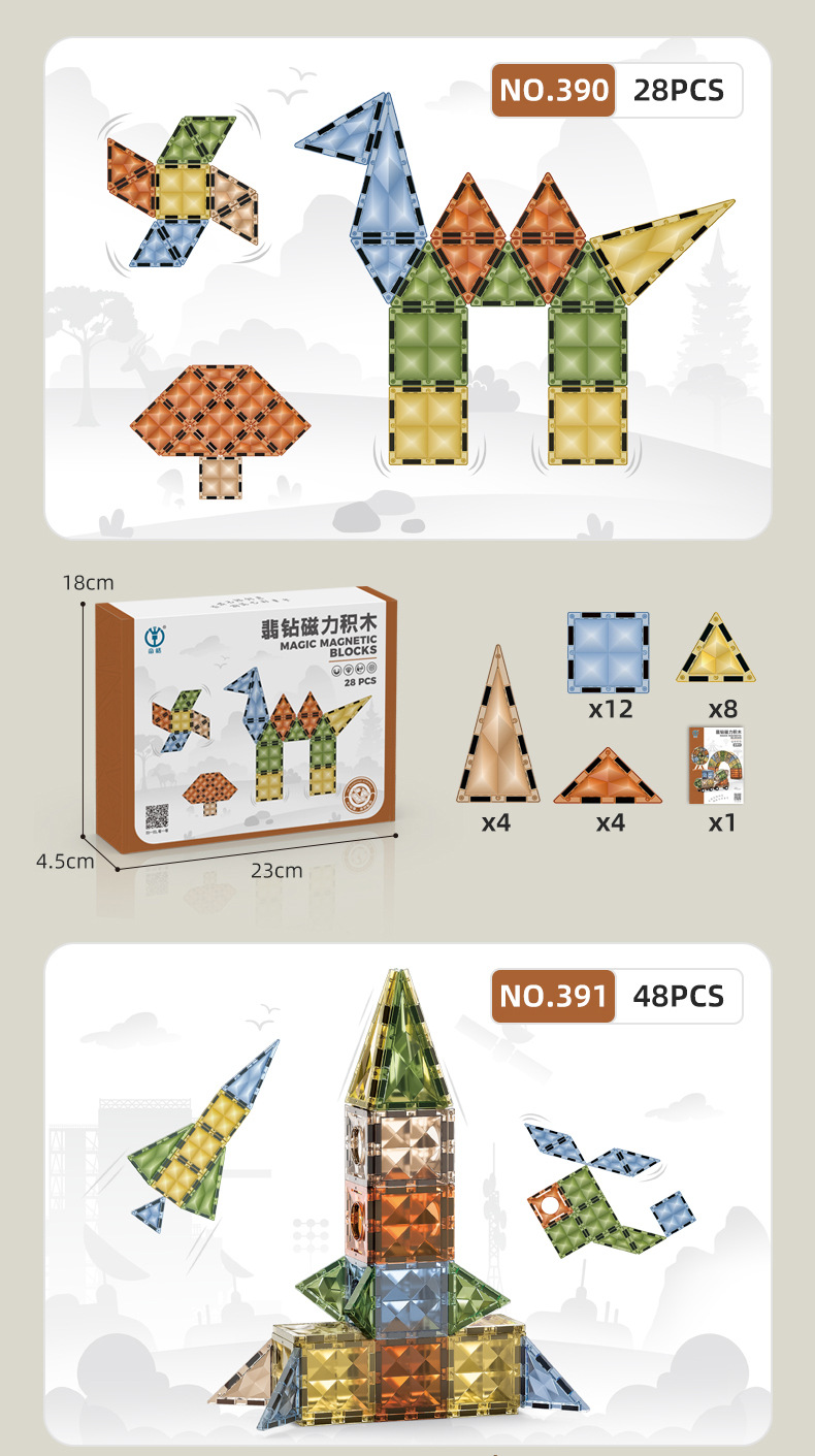 Tig 4D 다이아몬드 얼굴 색상 창 마그네틱 필름 조립 교육 빌딩 블록 조기 교육 자연 색상인지 자석 퍼즐 장난감스토어 가기