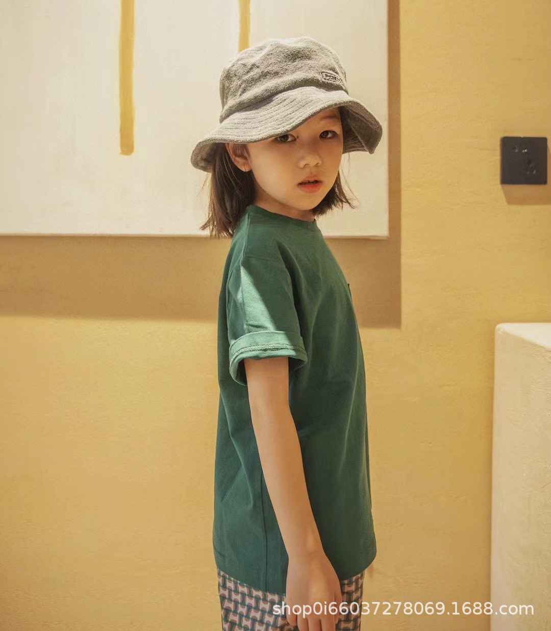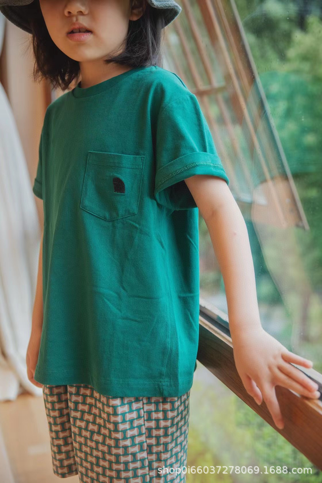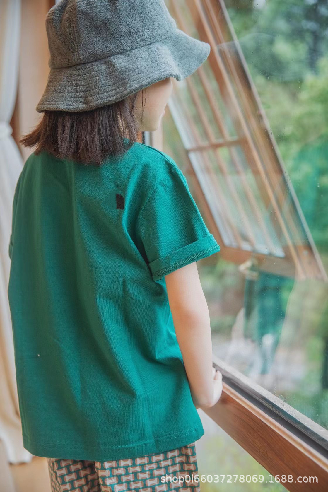 23 여름 새 아동복 반소매 일본식 올매치 편지 자수 크루 넥 루즈 아기 티셔츠 탑 하프 슬리브스토어 가기
